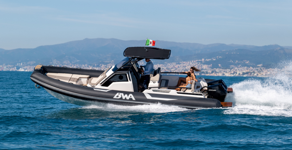 Schlauchboot BWA NN5, Baujahr 2022, liegt im Marina di Cannigione, Sardinien, Italien vor Anker. Es verfügt über 1 Kabinen und bietet Platz für 2 Personen mit 1 Toiletten. Bettwäsche und Küchenausstattung sind im Preis inbegriffen.