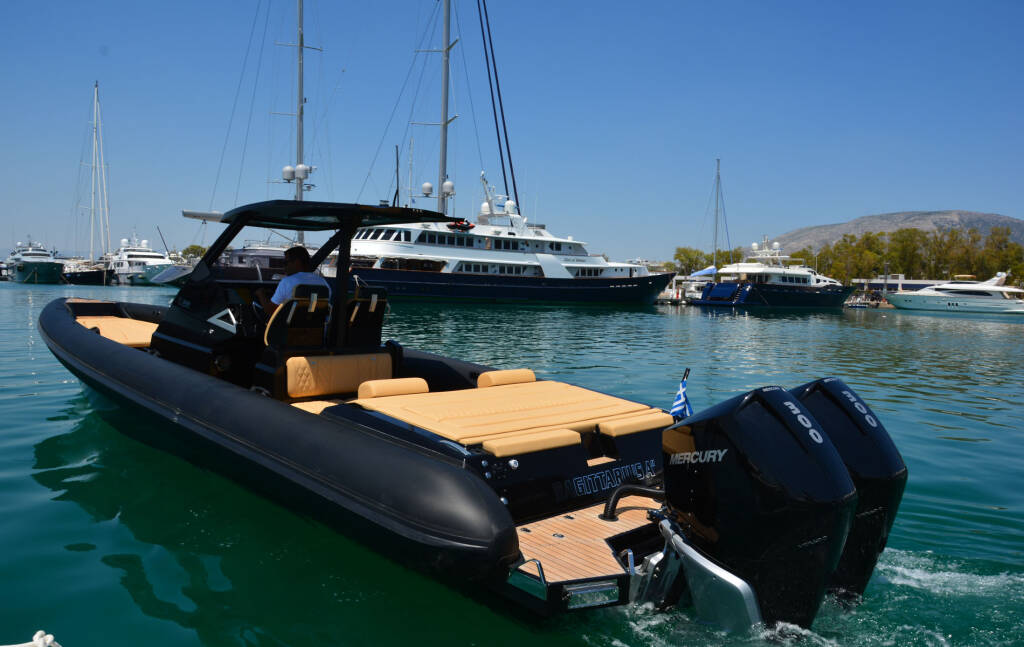 Rubber boat (R.I.B.) 38 Grand Sport Nani, built in 2020 is anchored in the Lagonisi Marina, Northern Greece/Aegean, Greece. It has 0 cabins, can accommodate 0 people and has 1 toilets. Bed linen and kitchen equipment are included in the price.