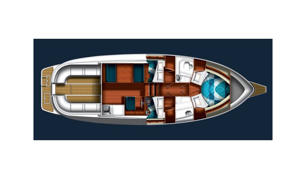 Motor boat Adria 1002 Vektor Vella, built in 2011 is anchored in the Sukosan, D-Marin Dalmacija Marina, Zadar region, Croatia. It has 3 cabins, can accommodate 6 + 1 people and has 2 toilets. Bed linen and kitchen equipment are included in the price.