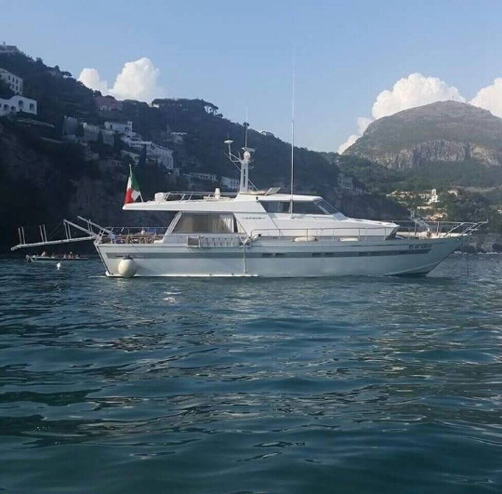 Motor yacht Akhir 16,60 Antonella IV, built in 1974 is anchored in the Salerno, Campania, Italy. It has 3 cabins, can accommodate 6 people and has 3 toilets. Bed linen and kitchen equipment are included in the price.