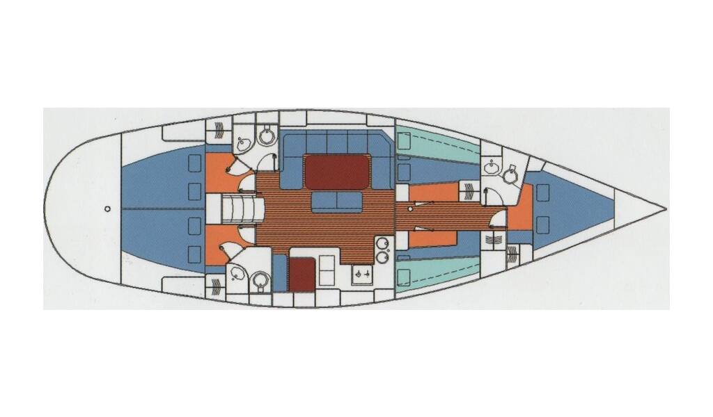Sailing yacht Alfa 51 Jacosta, built in 2012 is anchored in the Paros, Cyclades, Greece. It has 4 + 1 cabins, can accommodate 8 + 2 people and has 3 toilets. Bed linen and kitchen equipment are included in the price.