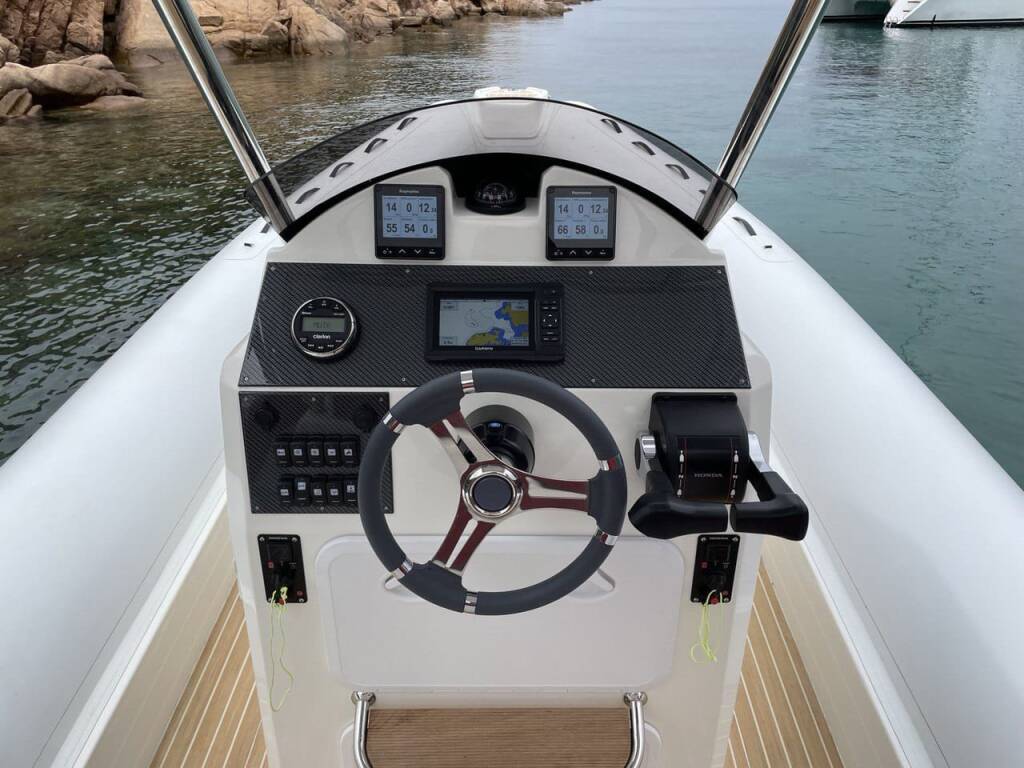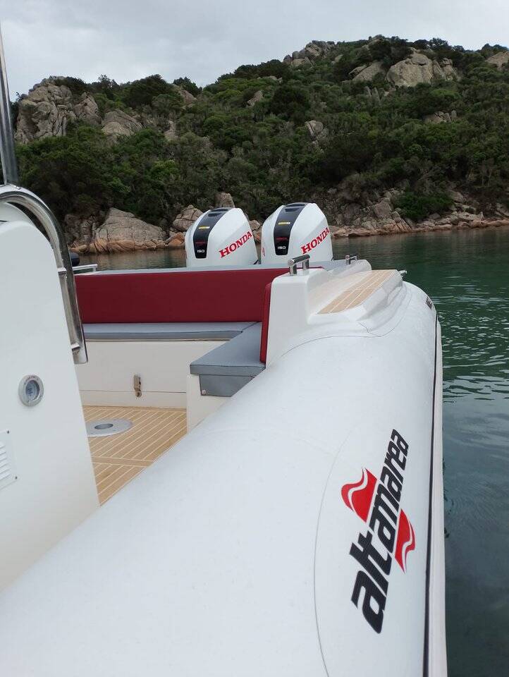 Rubber boat (R.I.B.) Altamarea Wave 27 GT NN, built in 2022 is anchored in the Marina di Cannigione, Sardinia, Italy. It has 0 cabins, can accommodate 0 people and has 0 toilets. Bed linen and kitchen equipment are included in the price.