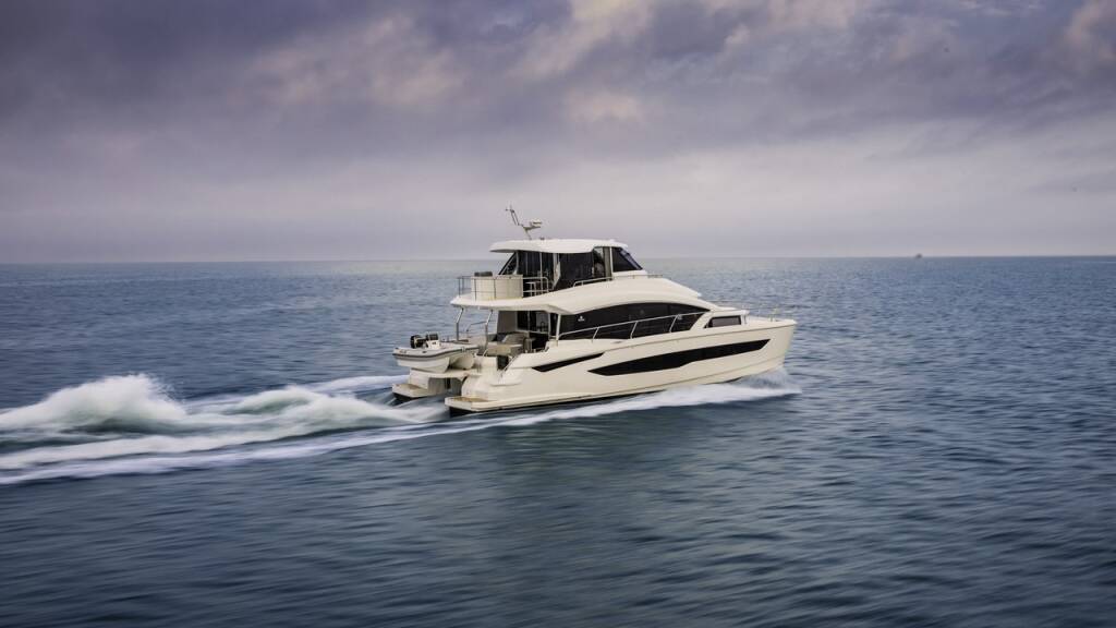 Power catamaran Aquila 54 By My Side, built in 2024 is anchored in the Split, West Coast (Zapadna obala), Split region, Croatia. It has 4 cabins, can accommodate 8 people and has 5 toilets. Bed linen and kitchen equipment are included in the price.