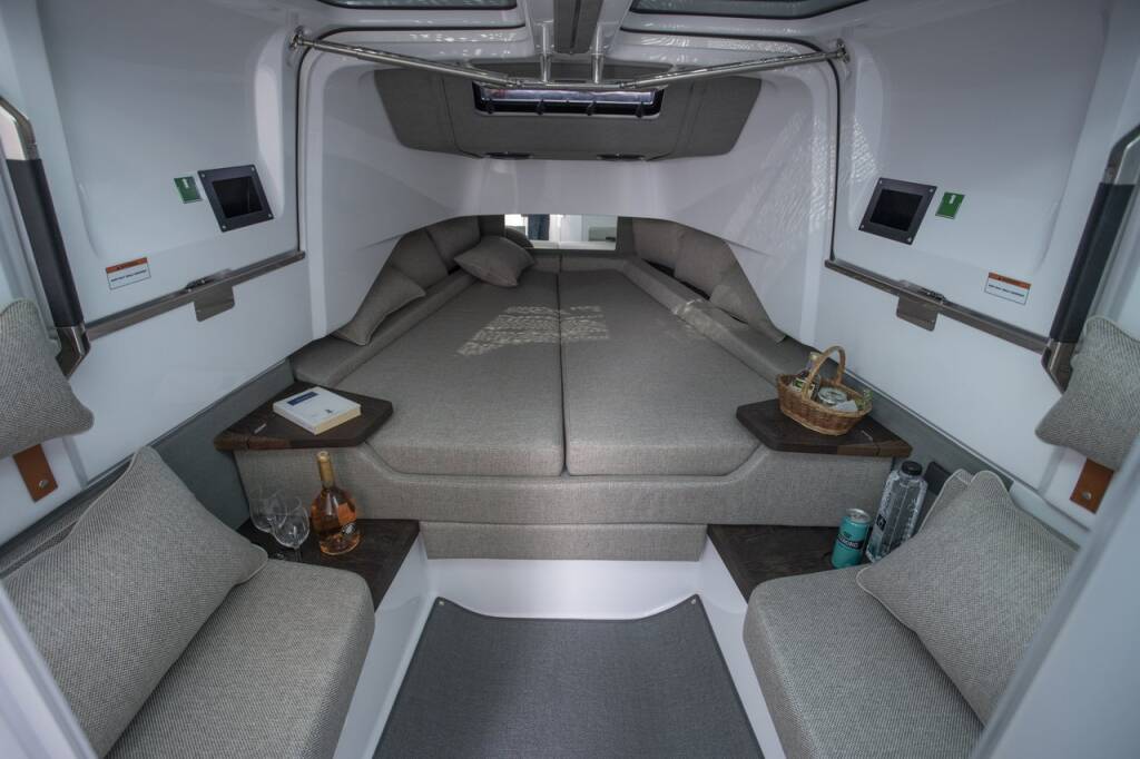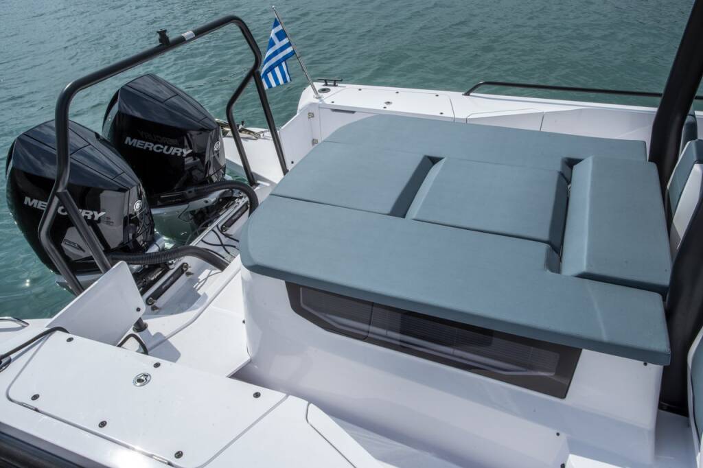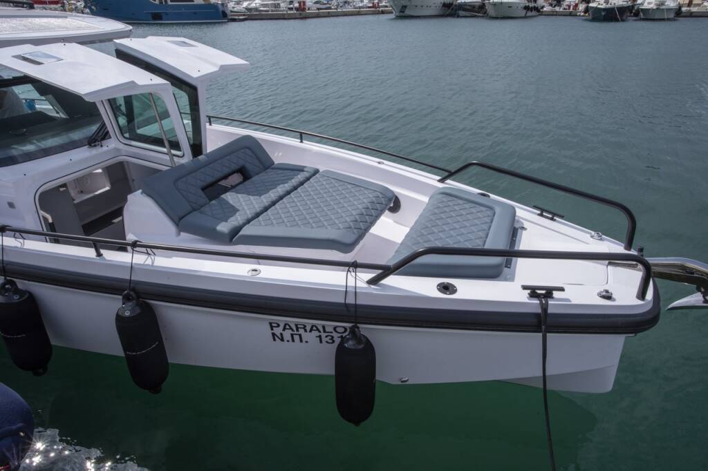 Motor boat Axopar 37 Sun Top Paralos, built in 2022 is anchored in the Paros, Cyclades, Greece. It has 2 cabins, can accommodate 2 people and has 1 toilets. Bed linen and kitchen equipment are included in the price.