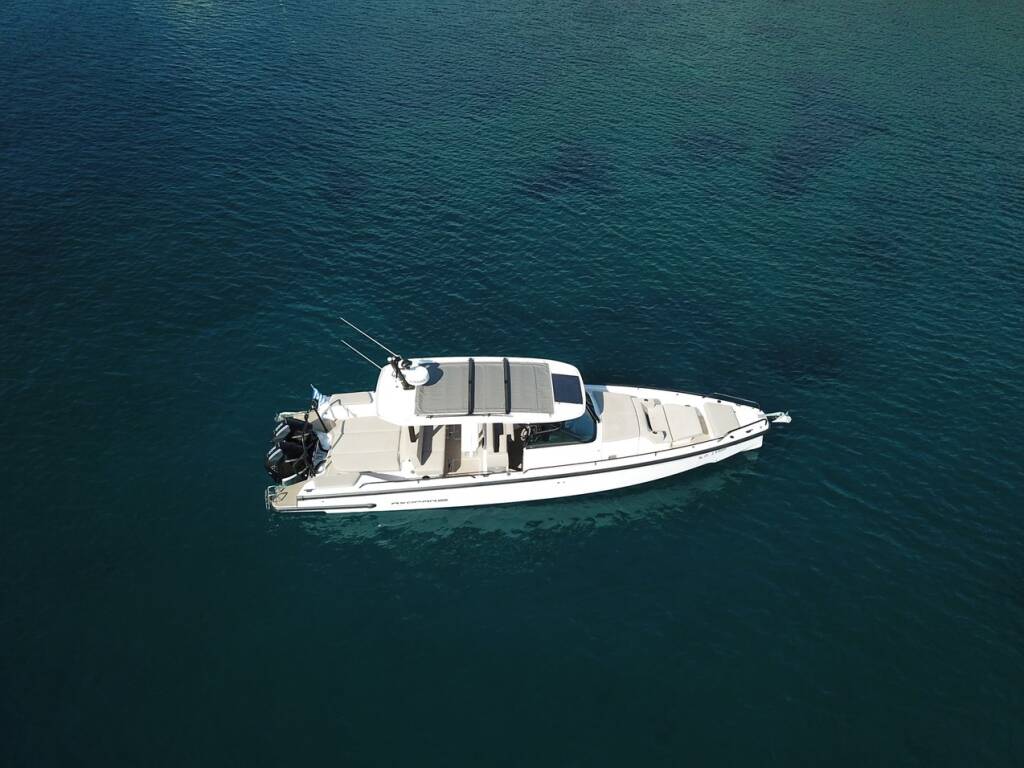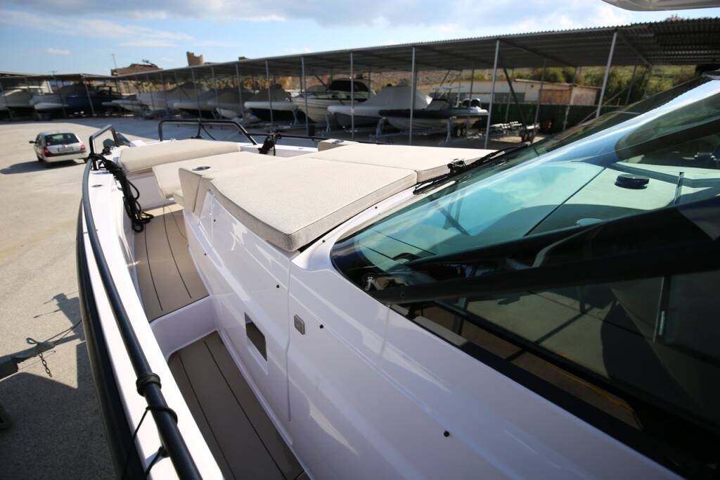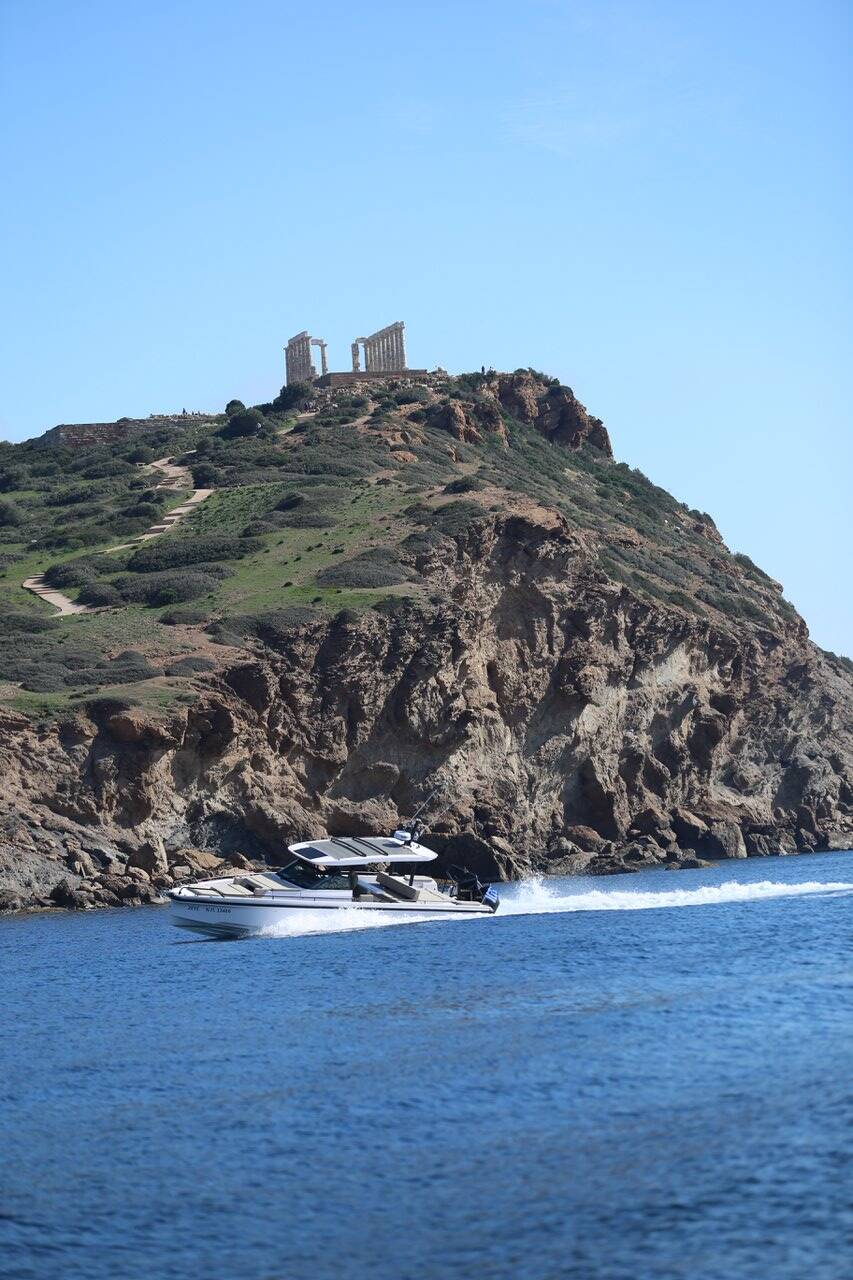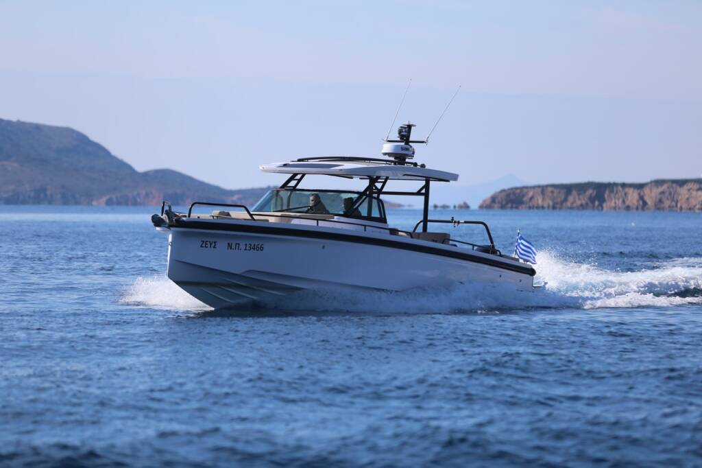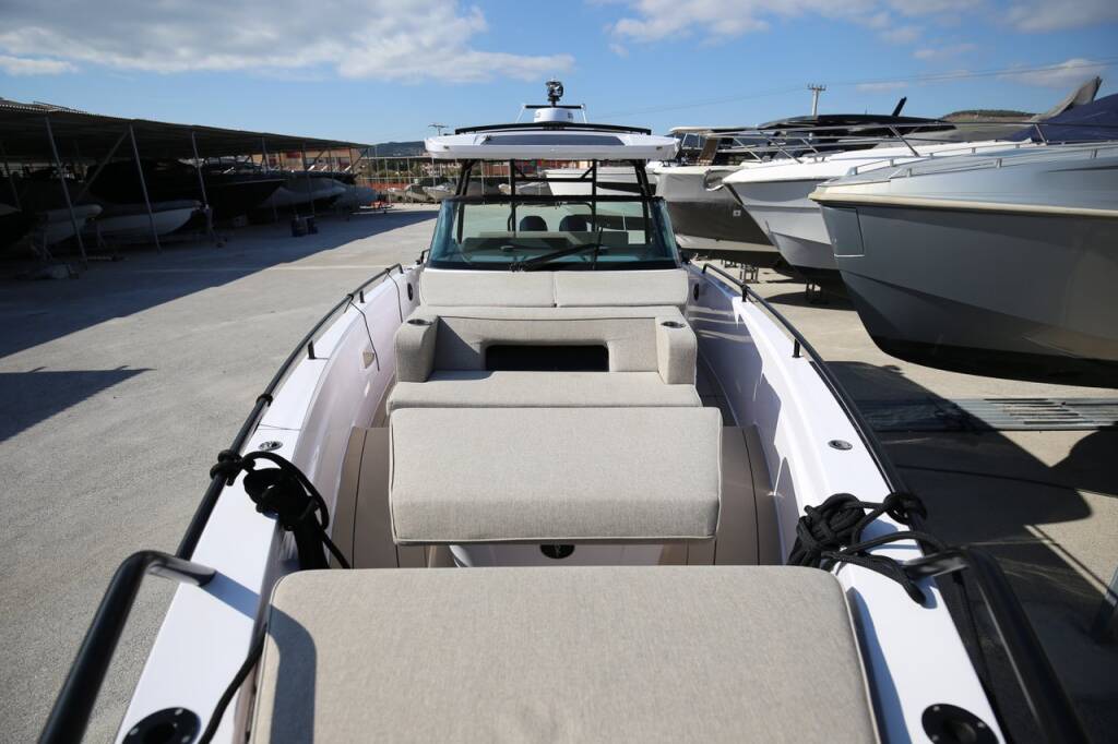 Motor boat Axopar 37 Sun Top Zeus, built in 2023 is anchored in the Evia, Port of Eretria, Athens area/Saronic/Peloponese, Greece. It has 1 cabins, can accommodate 2 people and has 1 toilets. Bed linen and kitchen equipment are included in the price.