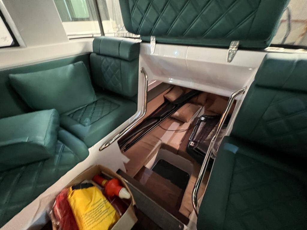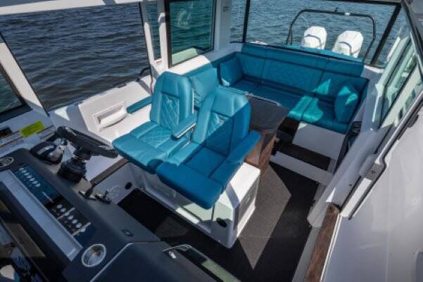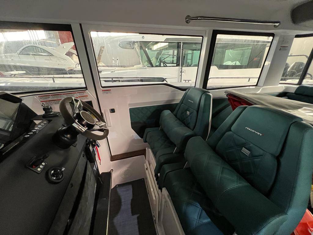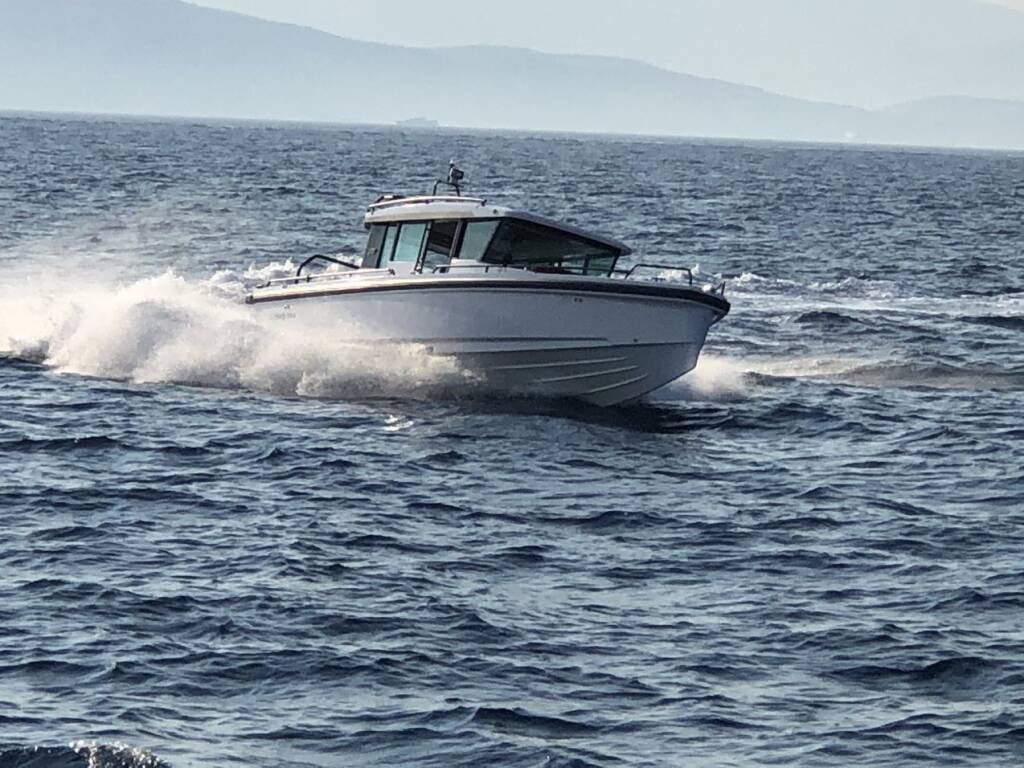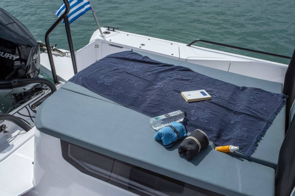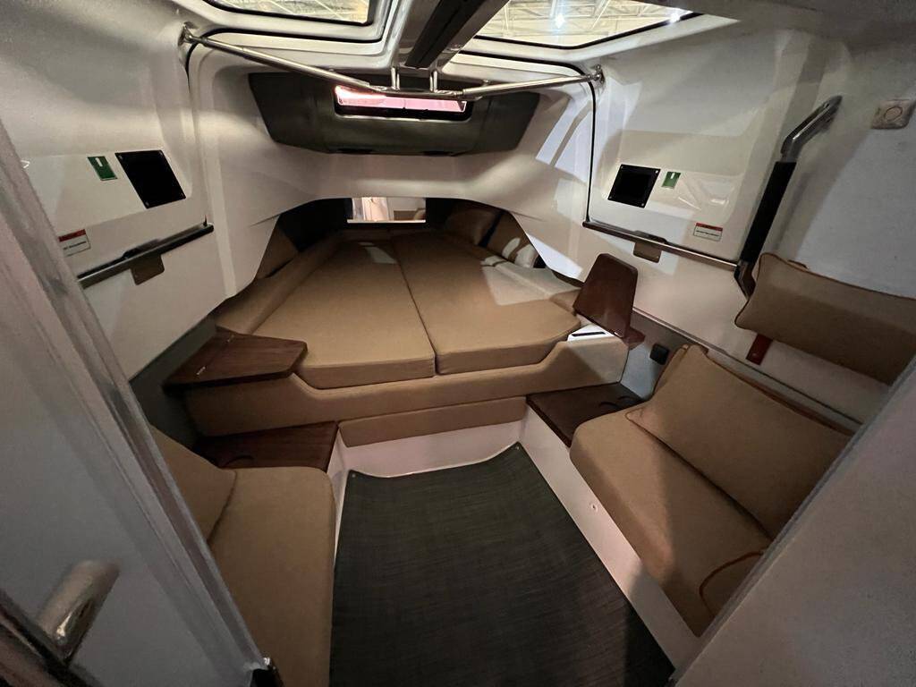 Motor boat Axopar 37 XC Cross Cabin Dionne, built in 2022 is anchored in the Evia, Port of Eretria, Athens area/Saronic/Peloponese, Greece. It has 2 cabins, can accommodate 4 people and has 1 toilets. Bed linen and kitchen equipment are included in the price.