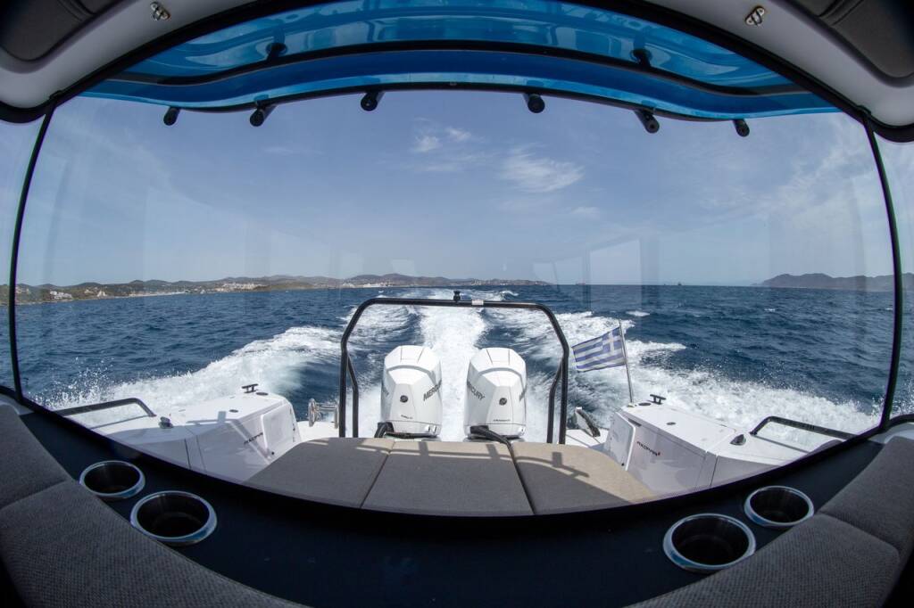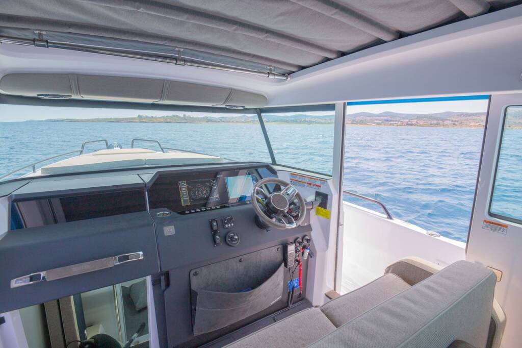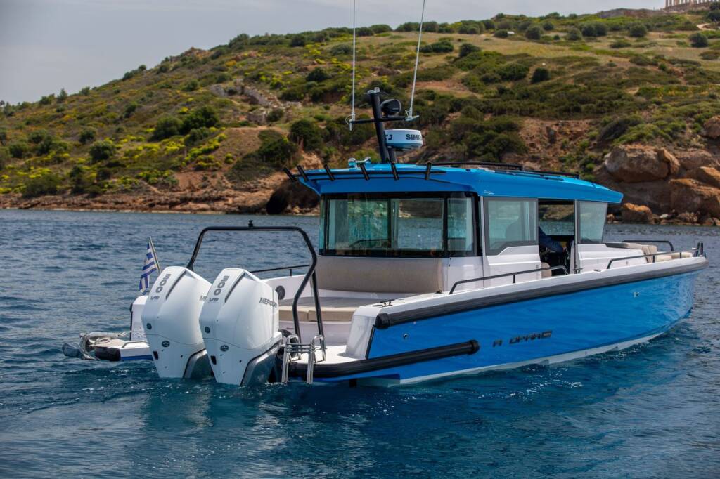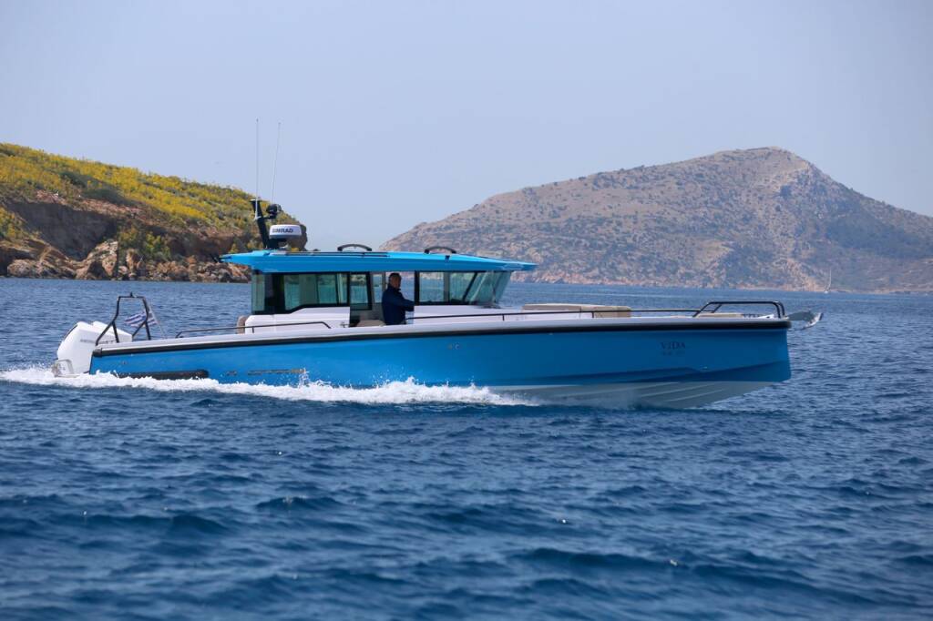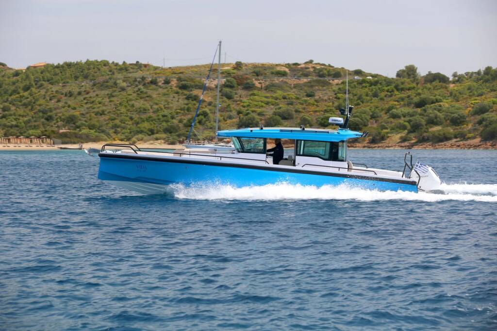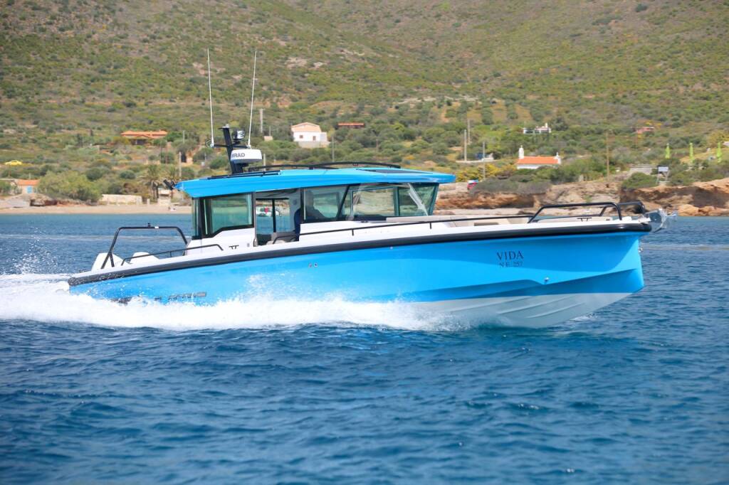 Motor boat Axopar 37 XC Cross Cabin Vida, built in 2023 is anchored in the Lavrion, main port, Athens area/Saronic/Peloponese, Greece. It has 1 cabins, can accommodate 4 people and has 1 toilets. Bed linen and kitchen equipment are included in the price.