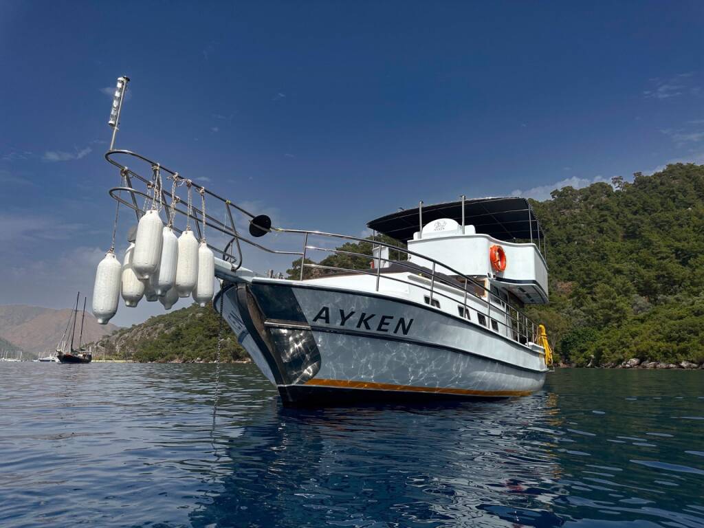 Gulet Ayken Ayken, built in 2023 is anchored in the Marmaris, Netsel Marina, Aegean, Turkey. It has 3 cabins, can accommodate 6 + 2 people and has 3 toilets. Bed linen and kitchen equipment are included in the price.