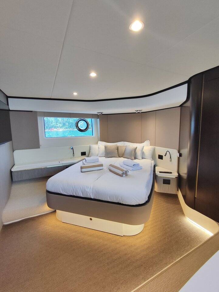 Motor yacht Azimut 55 Be Happy, built in 2019 is anchored in the Marina Kastela, Split region, Croatia. It has 3 + 1 cabins, can accommodate 6 + 1 people and has 2 + 1 toilets. Bed linen and kitchen equipment are included in the price.