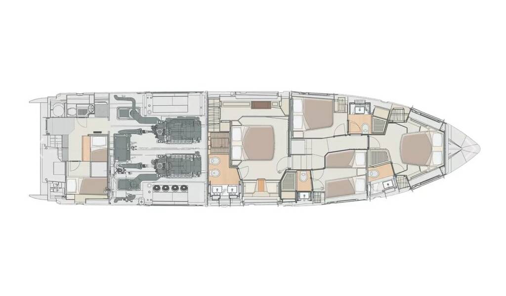 Motor yacht Azimut 72 Alyss, built in 2018 is anchored in the Trogir, Yachtclub Seget (Marina Baotić), Split region, Croatia. It has 4 + 1 cabins, can accommodate 8 + 8 people and has 4 + 1 toilets. Bed linen and kitchen equipment are included in the price.