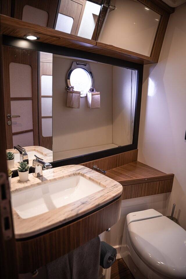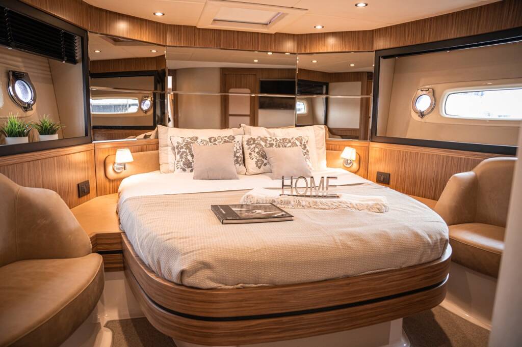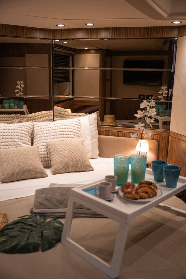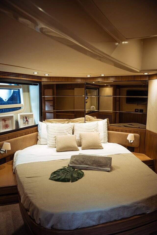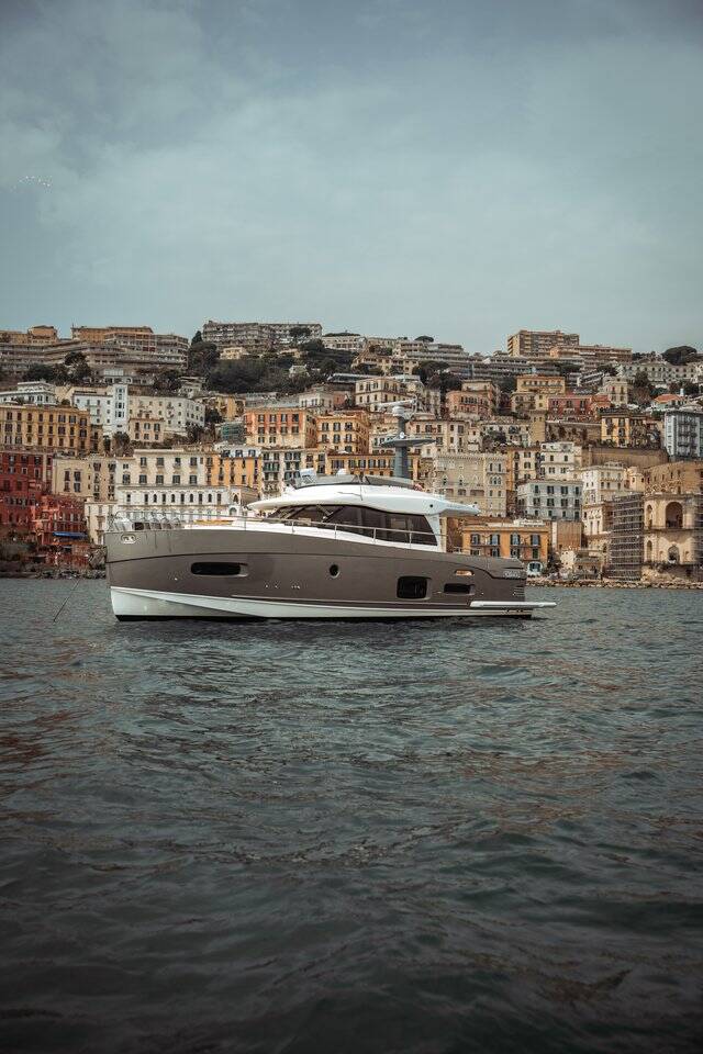Motor yacht Azimut Magellano 53 Ciù Ciù, built in 2017 is anchored in the Naples, Porticciolo di Santa Lucia, Campania, Italy. It has 3 cabins, can accommodate 6 people and has 2 toilets. Bed linen and kitchen equipment are included in the price.