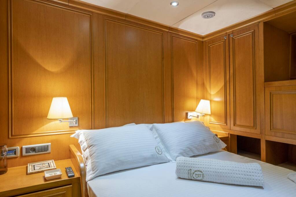 Gulet Babylon Babylon, built in 2015 is anchored in the Bodrum Harbour, Aegean, Turkey. It has 5 cabins, can accommodate 10 people and has 5 toilets. Bed linen and kitchen equipment are included in the price.