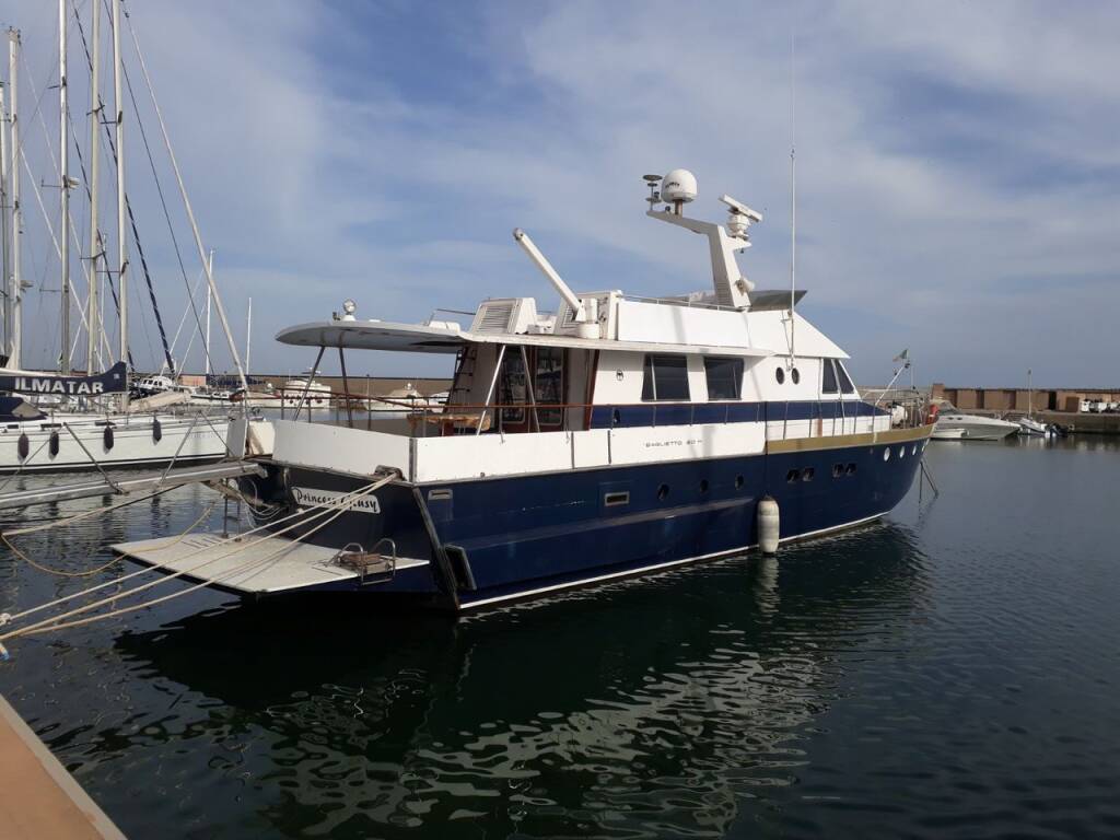 Motor yacht Baglietto 20M Princess Giusy, built in 1971 is anchored in the Marina Chiaiolella, Procida, Campania, Italy. It has 4 + 1 cabins, can accommodate 8 + 1 people and has 3 + 1 toilets. Bed linen and kitchen equipment are included in the price.