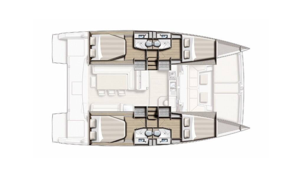 Catamaran Bali 4.0 Indigo Star, built in 2018 is anchored in the Marina Frapa, Rogoznica, Šibenik region, Croatia. It has 4 cabins, can accommodate 8 + 2 people and has 4 toilets. Bed linen and kitchen equipment are included in the price.