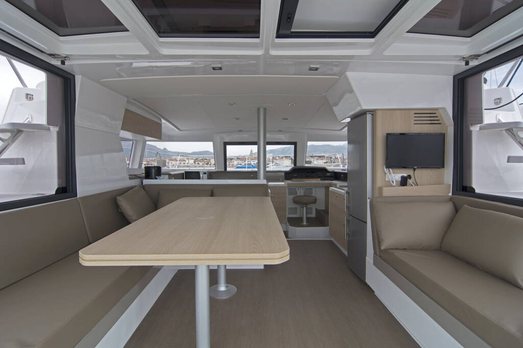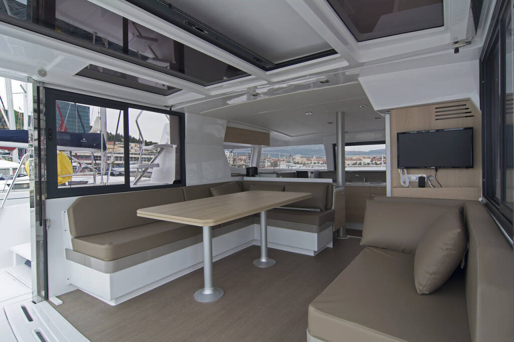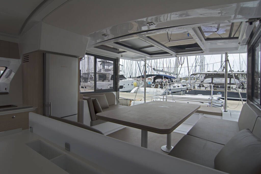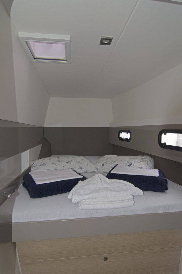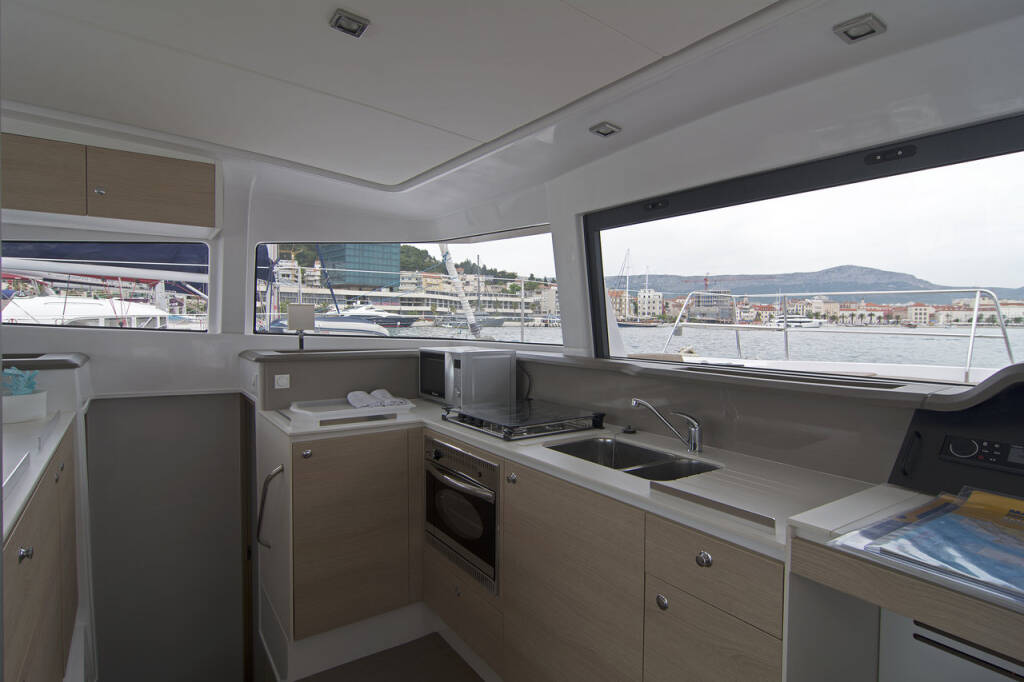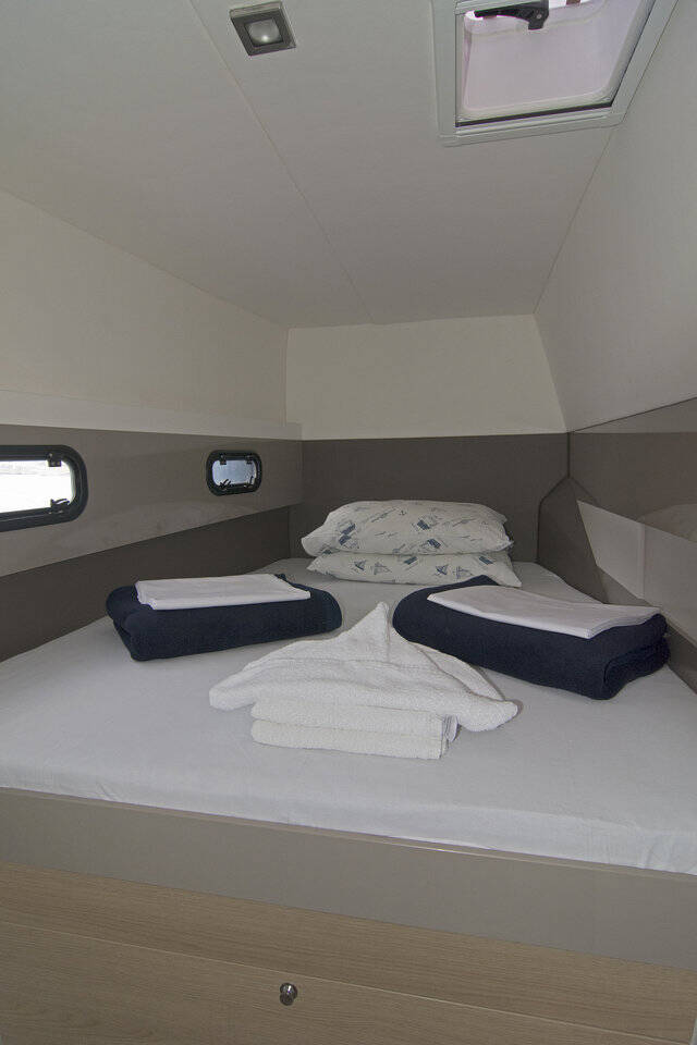 Catamaran Bali 4.1 Adria Sunset, built in 2019 is anchored in the ACI Marina Split, Split region, Croatia. It has 4 cabins, can accommodate 8 + 2 people and has 4 toilets. Bed linen and kitchen equipment are included in the price.