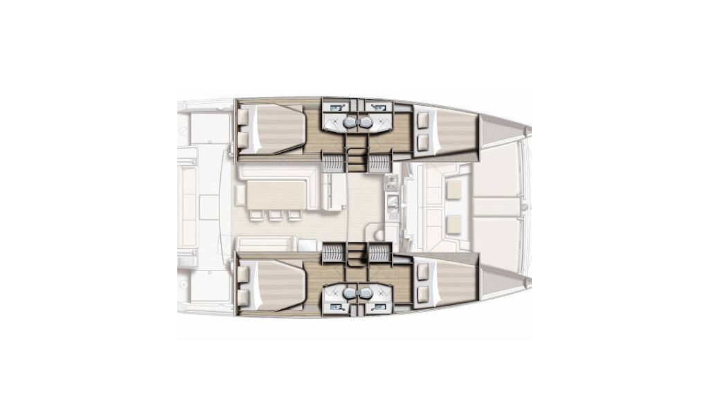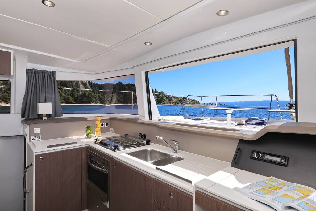 Catamaran Bali 4.1 Bisou, built in 2020 is anchored in the Marina Mandalina, Sibenik, Šibenik region, Croatia. It has 4 cabins, can accommodate 8 + 2 people and has 4 toilets. Bed linen and kitchen equipment are included in the price.