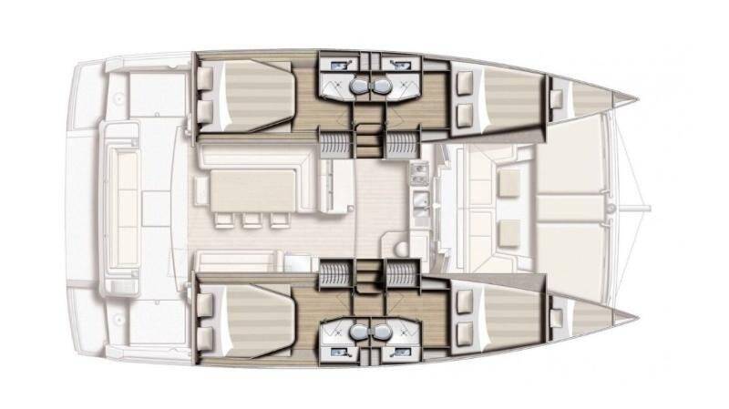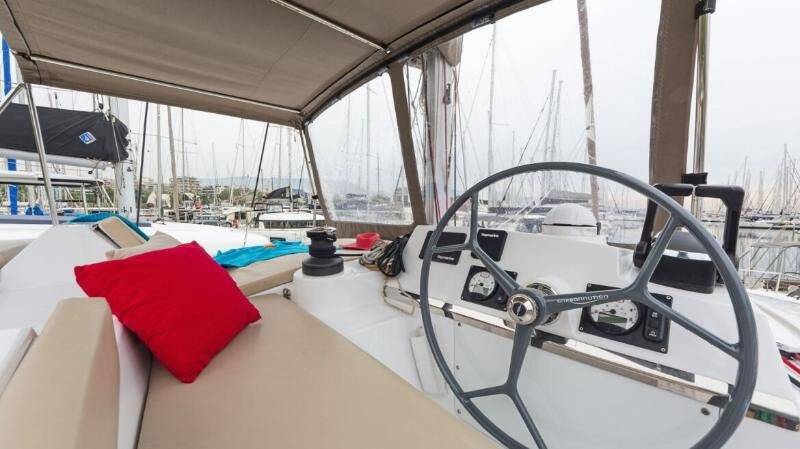 Catamaran Bali 4.1 Golden Waters, built in 2020 is anchored in the Port of Avdira, East Macedonia and Thrace, Greece. It has 4 cabins, can accommodate 8 + 2 people and has 4 toilets. Bed linen and kitchen equipment are included in the price.