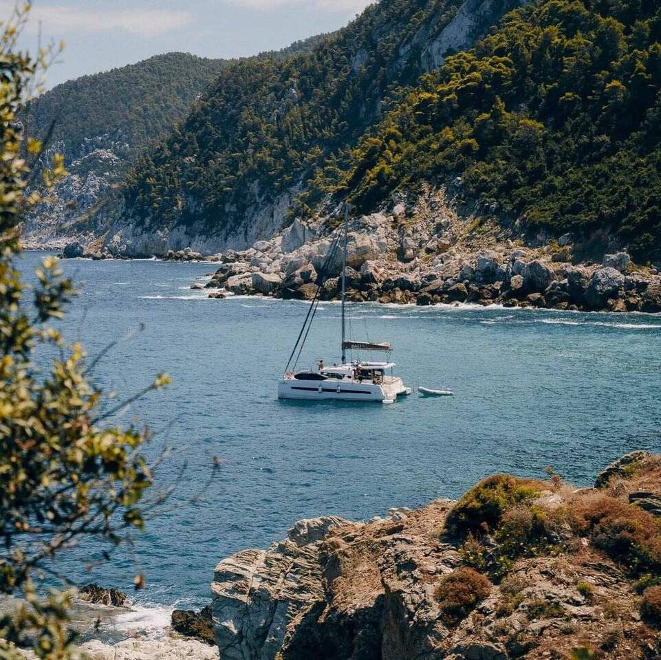 Catamaran Bali 4.1 Iris, built in 2019 is anchored in the Volos, Skiathos/Sporades, Volos, Greece. It has 4 + 1 cabins, can accommodate 8 + 2 + 1 people and has 3 toilets. Bed linen and kitchen equipment are included in the price.