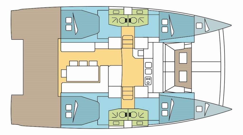 Catamaran Bali 4.1 LURTZ, built in 2021 is anchored in the Polynesia, Raiatea, French Polynesia, French Polynesia. It has 4 + 2 cabins, can accommodate 8 + 2 people and has 4 toilets. Bed linen and kitchen equipment are included in the price.