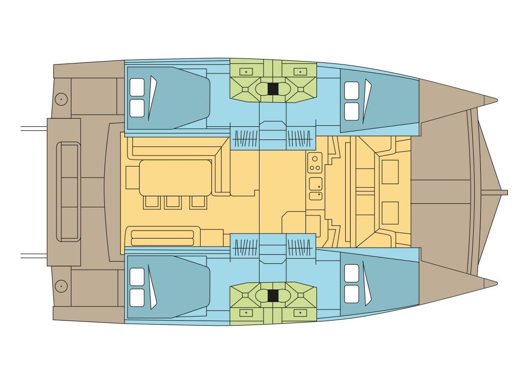Catamaran Bali 4.1 NAMASTE_DB, built in 2019 is anchored in the Whitsundays, Airlie Beach, Coral Sea Marina, Whitsunday Region of Queensland, Australia and Oceania. It has 4 cabins, can accommodate 8 people and has 4 toilets. Bed linen and kitchen equipment are included in the price.