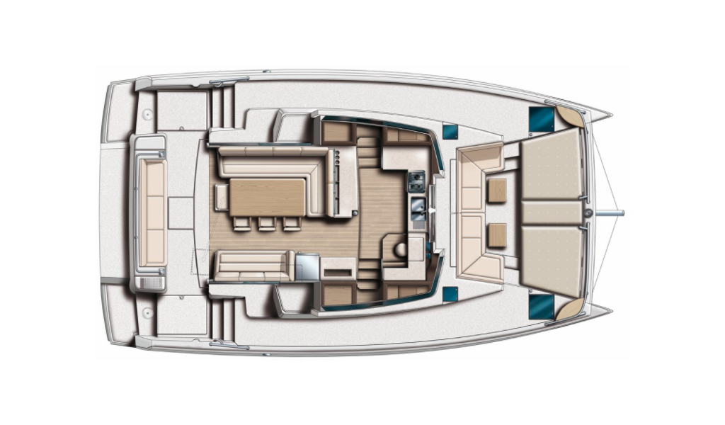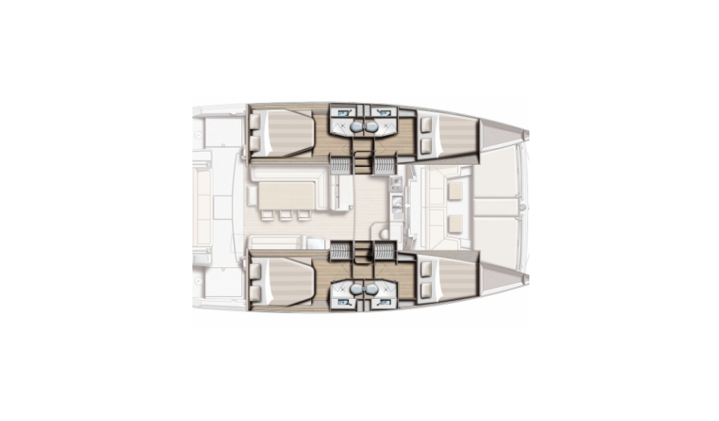 Catamaran Bali 4.1 Paspartu, built in 2020 is anchored in the Preveza, Cleopatra Marina, Ionian Islands, Greece. It has 4 + 1 cabins, can accommodate 8 + 2 + 2 people and has 4 + 1 toilets. Bed linen and kitchen equipment are included in the price.