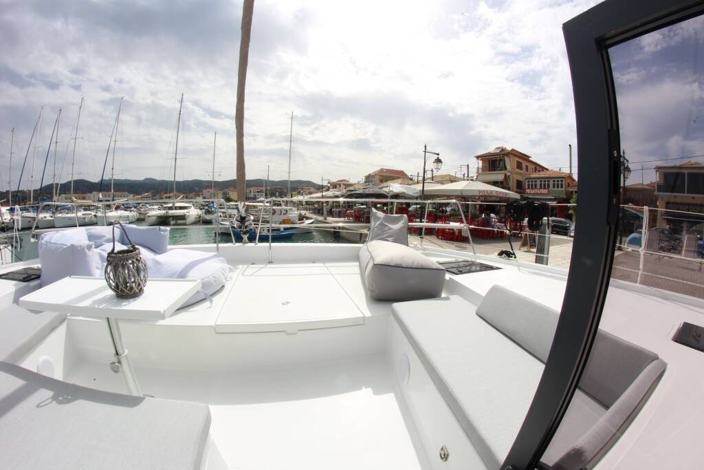 Catamaran Bali 4.2 Blue Navy, built in 2022 is anchored in the Lefkas, Nikiana Marina, Ionian Islands, Greece. It has 4 + 2 cabins, can accommodate 8 + 2 people and has 4 + 1 toilets. Bed linen and kitchen equipment are included in the price.