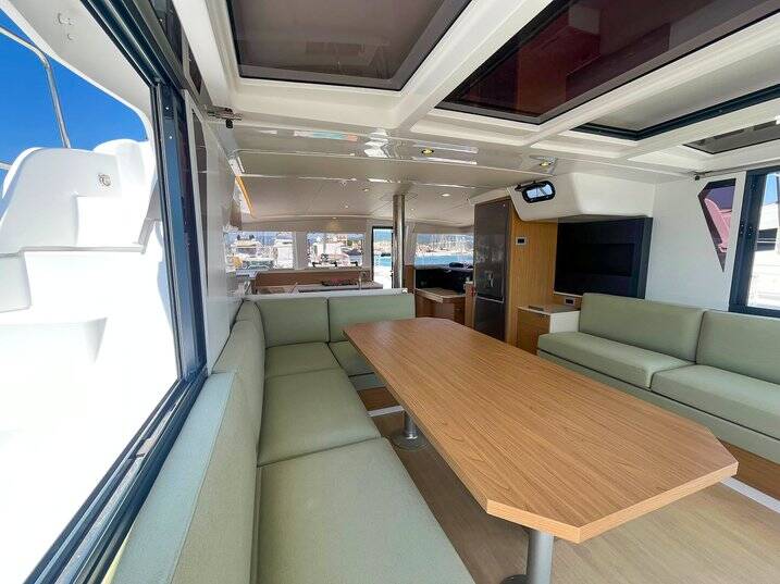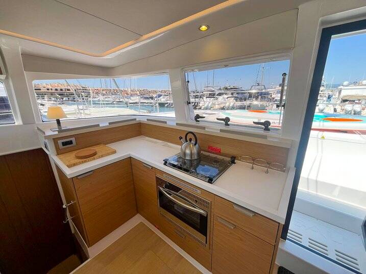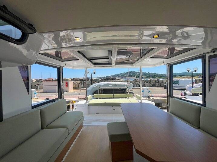 Catamaran Bali 4.2 Love, built in 2025 is anchored in the Marines de Cogolin, Provence-Alpes-Côte d'Azur, France. It has 4 cabins, can accommodate 8 + 2 people and has 4 toilets. Bed linen and kitchen equipment are included in the price.