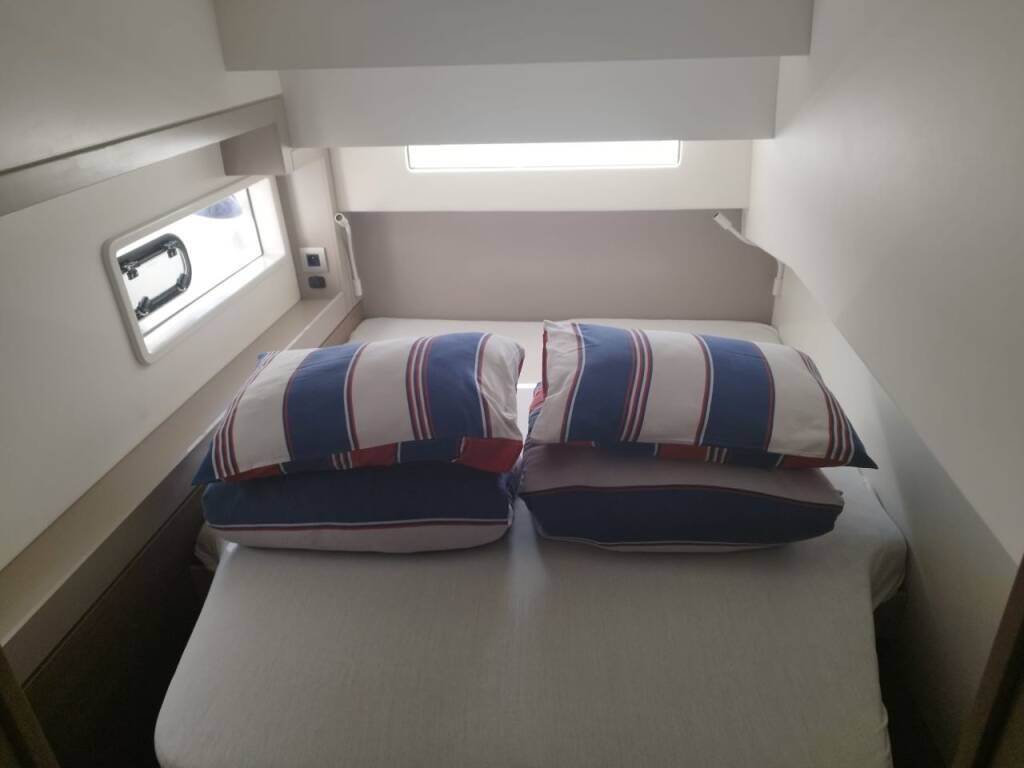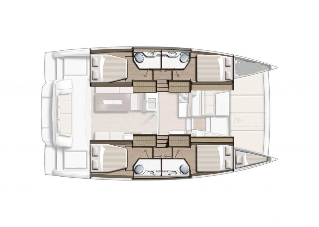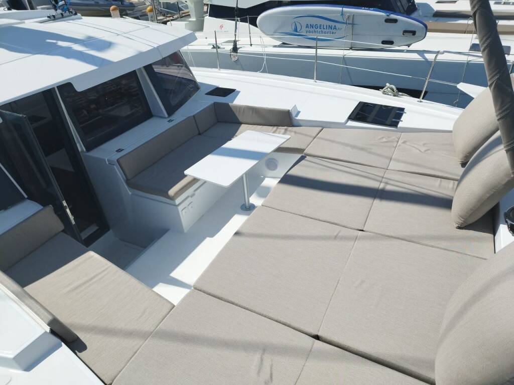 Catamaran Bali 4.2 Open Office, built in 2023 is anchored in the Trogir, Marina Trogir (ex.SCT), Split region, Croatia. It has 4 + 1 cabins, can accommodate 8 + 1 people and has 4 toilets. Bed linen and kitchen equipment are included in the price.
