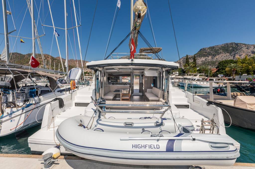 Catamaran Bali 4.2 OW Elifcim, built in 2022 is anchored in the Göcek, Aegean, Turkey. It has 3 + 1 cabins, can accommodate 6 people and has 3 + 1 toilets. Bed linen and kitchen equipment are included in the price.