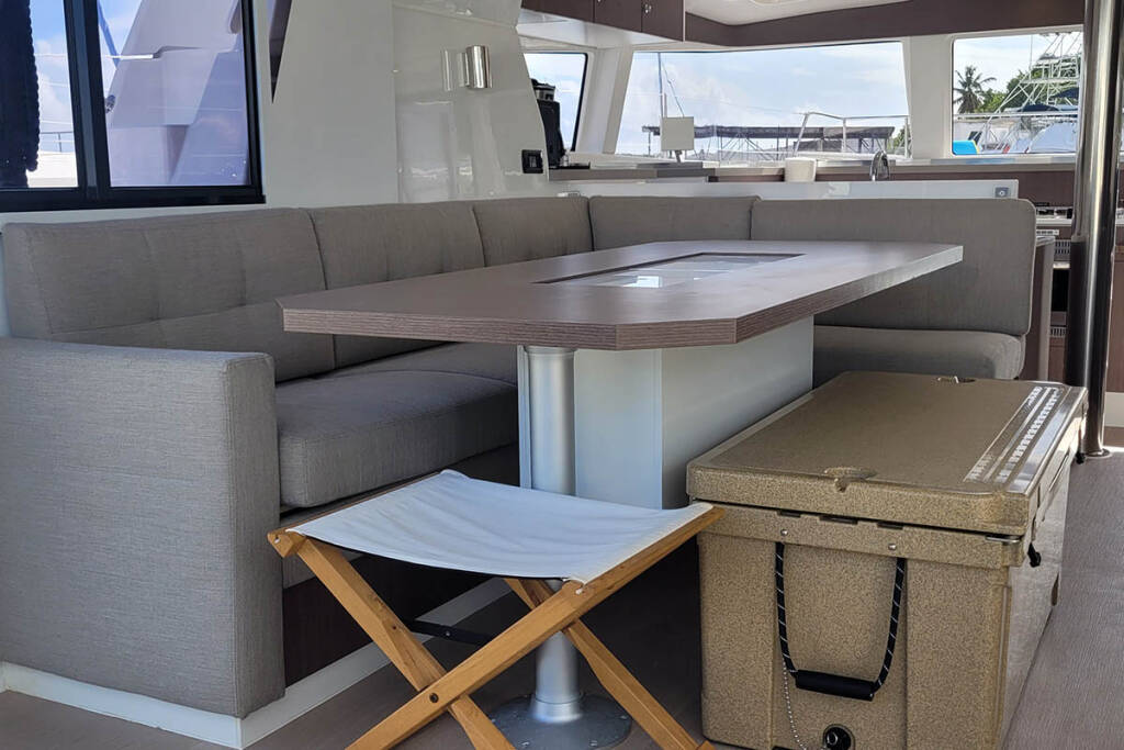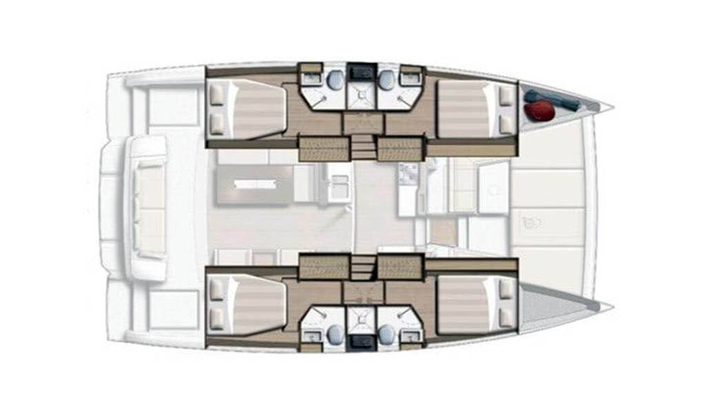 Catamaran Bali 4.2 Seas the Day BVI, built in 2022 is anchored in the BVI, Tortola, Nanny Cay Marina, British Virgin Islands, British Virgin Islands. It has 4 cabins, can accommodate 8 + 2 people and has 4 toilets. Bed linen and kitchen equipment are included in the price.