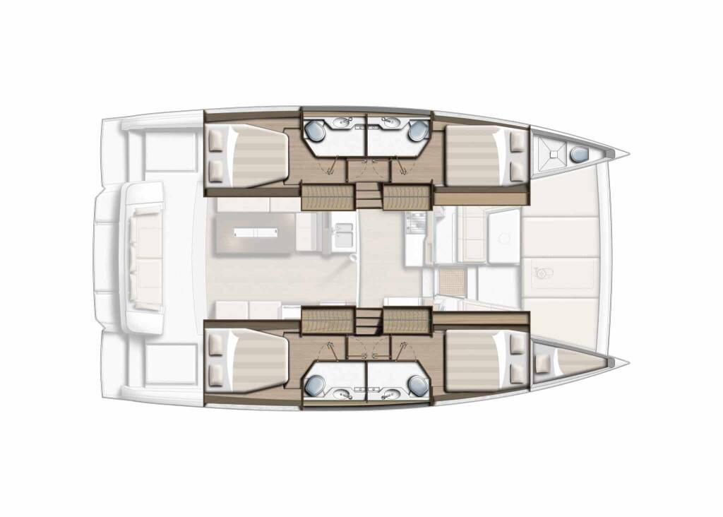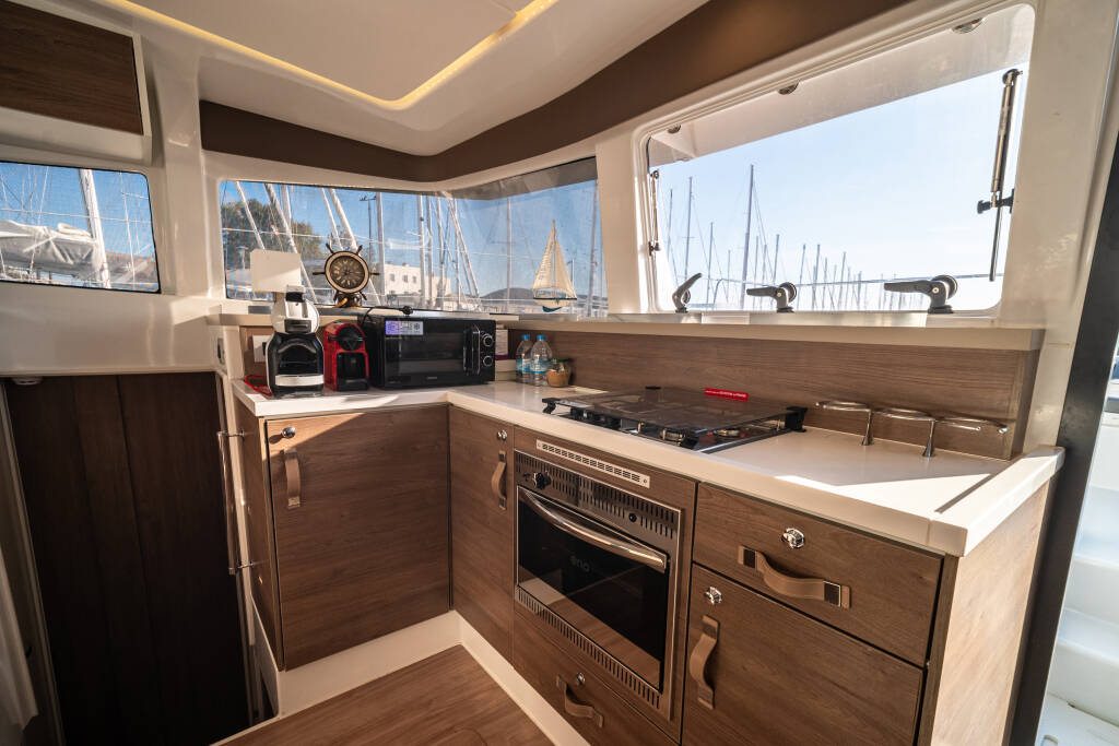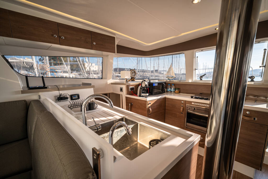 Catamaran Bali 4.2 Silver IX, built in 2023 is anchored in the Volos, Skiathos/Sporades, Volos, Greece. It has 4 + 1 cabins, can accommodate 8 + 1 people and has 4 + 1 toilets. Bed linen and kitchen equipment are included in the price.