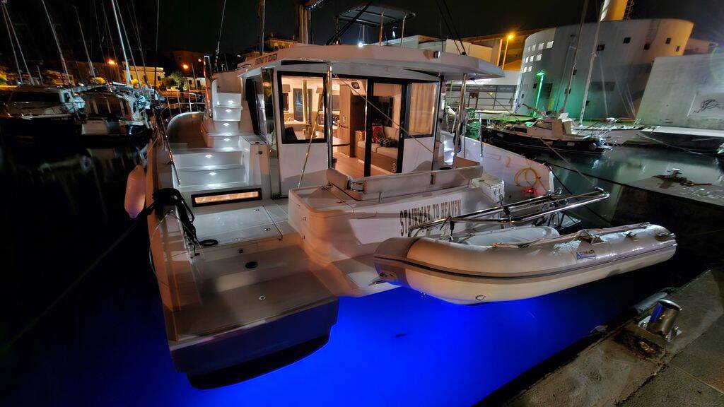 Catamaran Bali 4.2 Stairway To Heaven, built in 2023 is anchored in the Marina Zadar (ex. Tankerkomerc), Zadar region, Croatia. It has 4 + 1 cabins, can accommodate 8 + 1 + 1 people and has 4 + 1 toilets. Bed linen and kitchen equipment are included in the price.