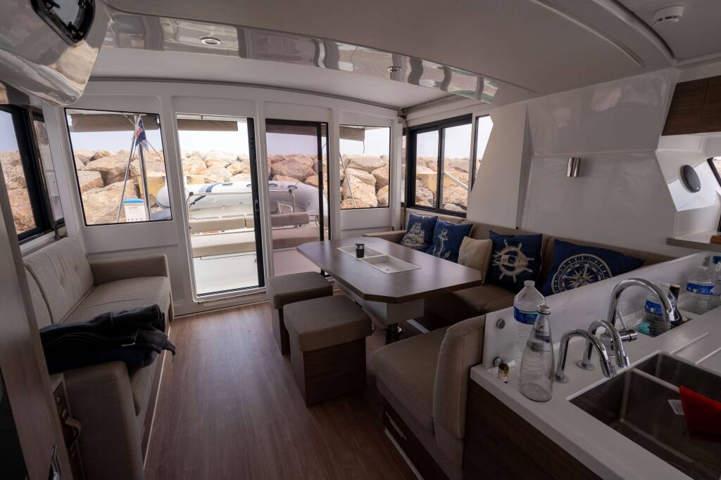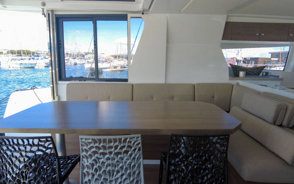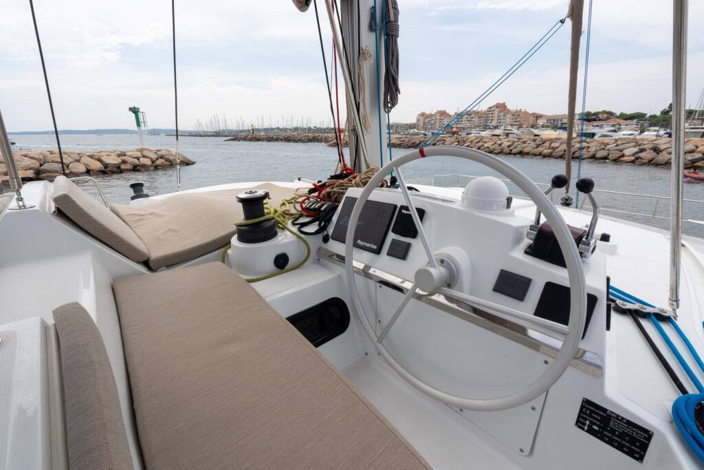 Catamaran Bali 4.2 Zaz, built in 2024 is anchored in the Hyeres Port Saint Pierre, Provence-Alpes-Côte d'Azur, France. It has 4 + 1 cabins, can accommodate 8 + 2 + 1 people and has 2 toilets. Bed linen and kitchen equipment are included in the price.