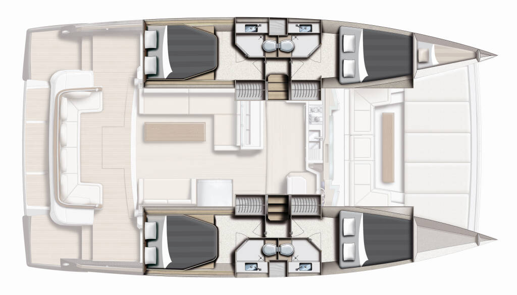 Power catamaran Bali 4.3 MY Sierra, built in 2020 is anchored in the Sukosan, D-Marin Dalmacija Marina, Zadar region, Croatia. It has 4 + 1 cabins, can accommodate 8 + 1 + 1 people and has 4 toilets. Bed linen and kitchen equipment are included in the price.