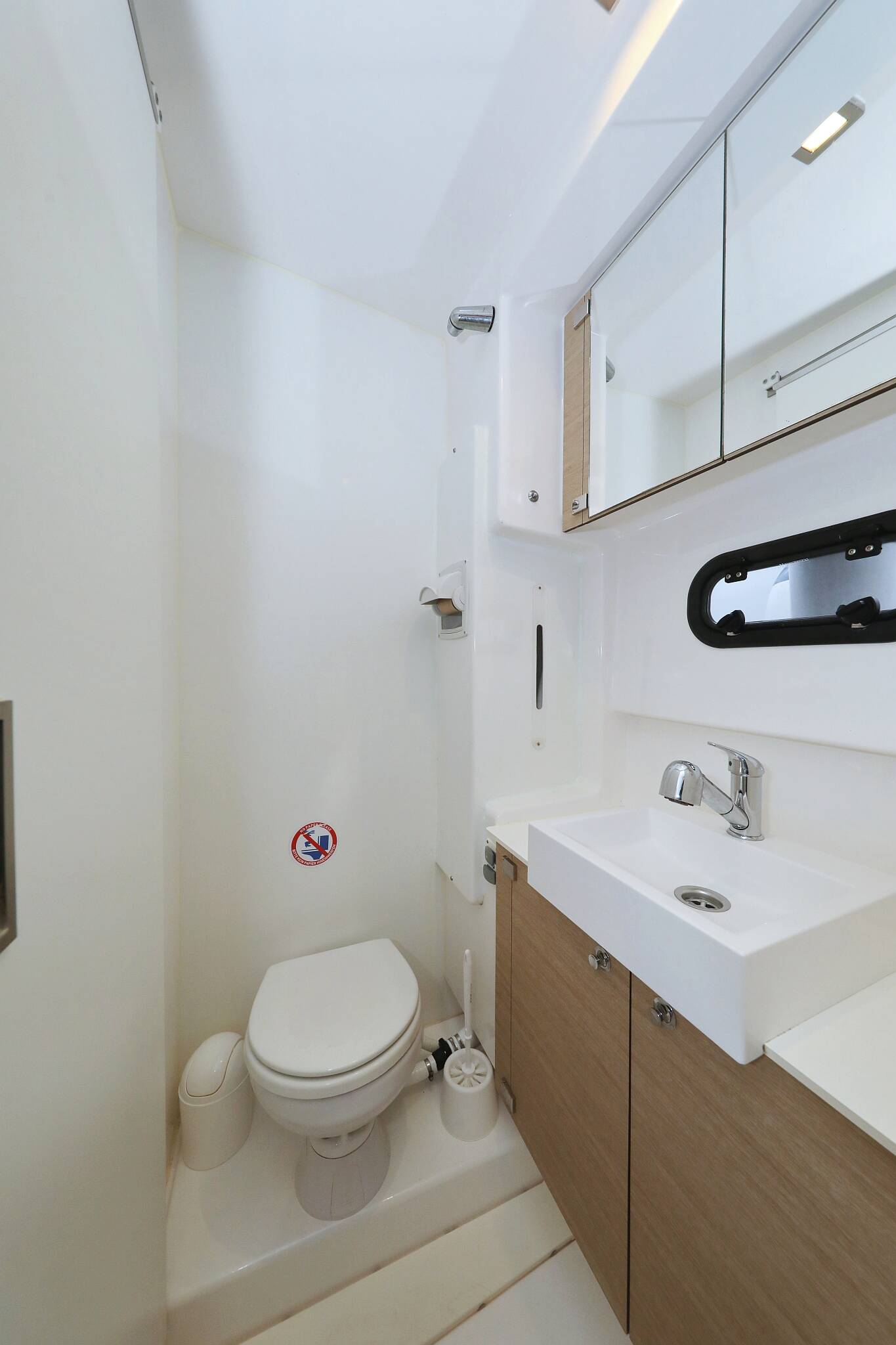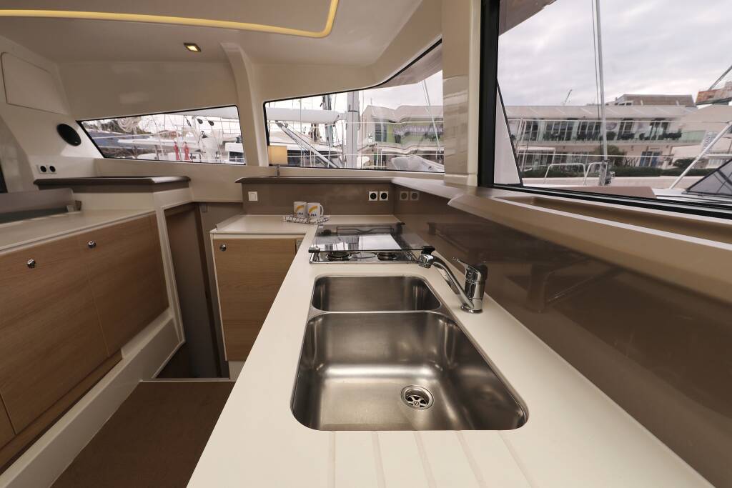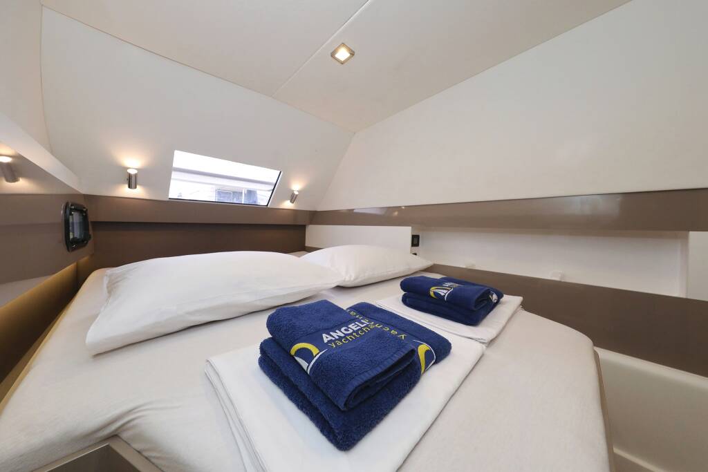 Catamaran Bali 4.3 Tisia, built in 2018 is anchored in the Trogir, Marina Trogir (ex.SCT), Split region, Croatia. It has 4 + 2 cabins, can accommodate 8 + 2 + 2 people and has 4 toilets. Bed linen and kitchen equipment are included in the price.