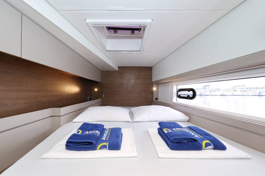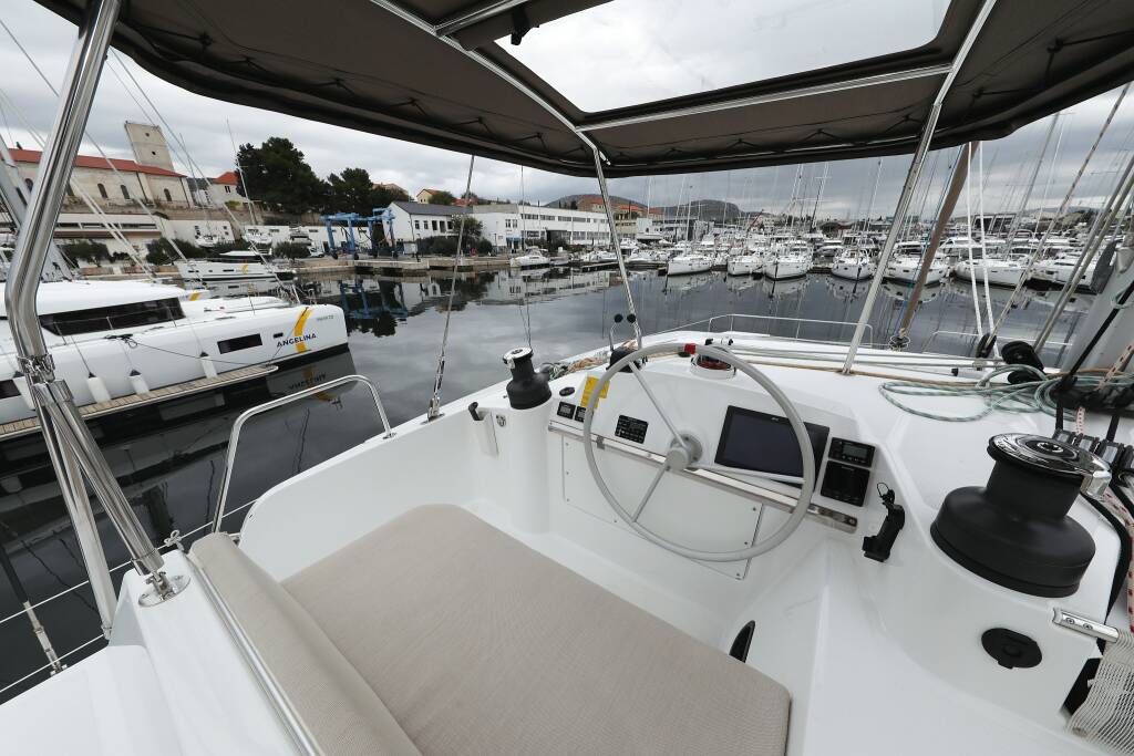 Catamaran Bali 4.4 Apollo, built in 2022 is anchored in the Marina Frapa, Rogoznica, Šibenik region, Croatia. It has 3 + 1 cabins, can accommodate 6 + 1 people and has 3 + 1 toilets. Bed linen and kitchen equipment are included in the price.