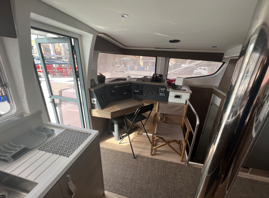 Catamaran Bali 4.4 Blue Diamond, built in 2023 is anchored in the Lefkas main port, Ionian Islands, Greece. It has 4 + 2 cabins, can accommodate 8 + 2 people and has 4 + 1 toilets. Bed linen and kitchen equipment are included in the price.
