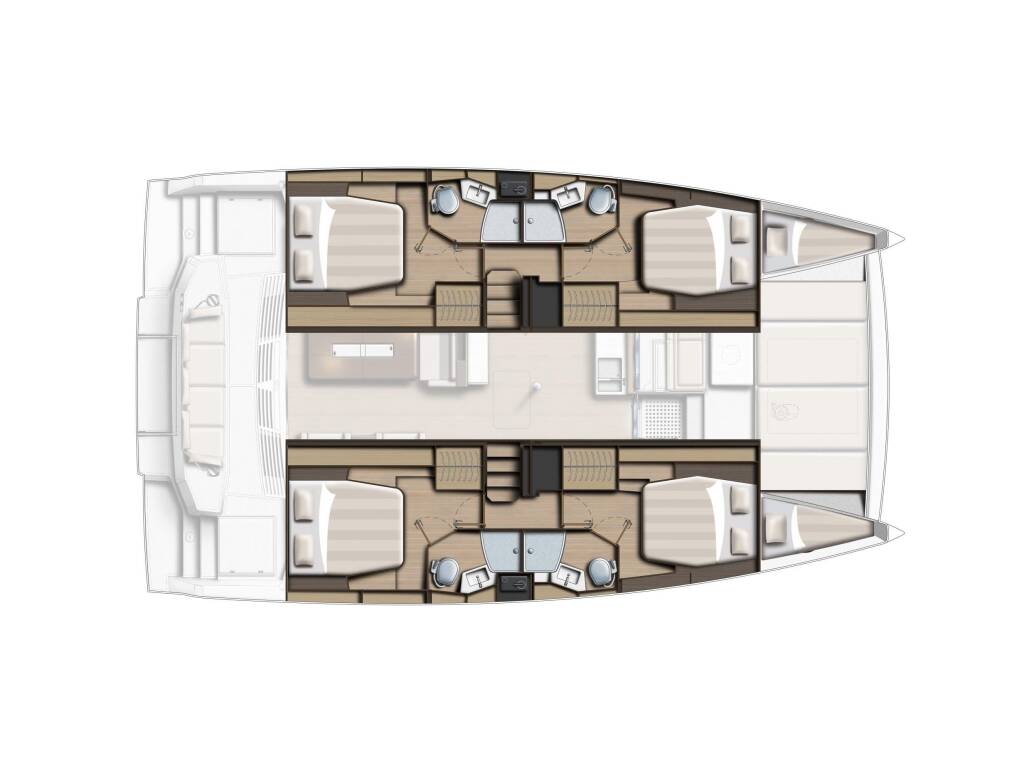 Catamaran Bali 4.4 Emmelia, built in 2022 is anchored in the Athens, Alimos marina, Athens area/Saronic/Peloponese, Greece. It has 4 + 2 cabins, can accommodate 8 + 2 people and has 4 toilets. Bed linen and kitchen equipment are included in the price.