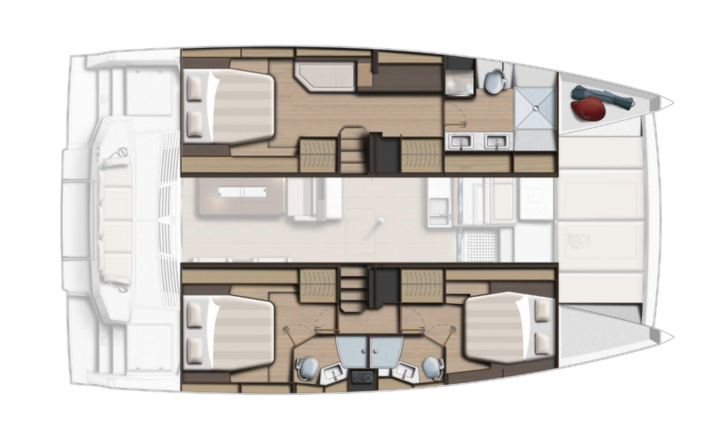 Catamaran Bali 4.4 Sunset Chaser, built in 2024 is anchored in the Bahamas, Abacos, Boat Harbour Marina, Abaco Islands, Bahamas. It has 3 cabins, can accommodate 6 people and has 3 toilets. Bed linen and kitchen equipment are included in the price.
