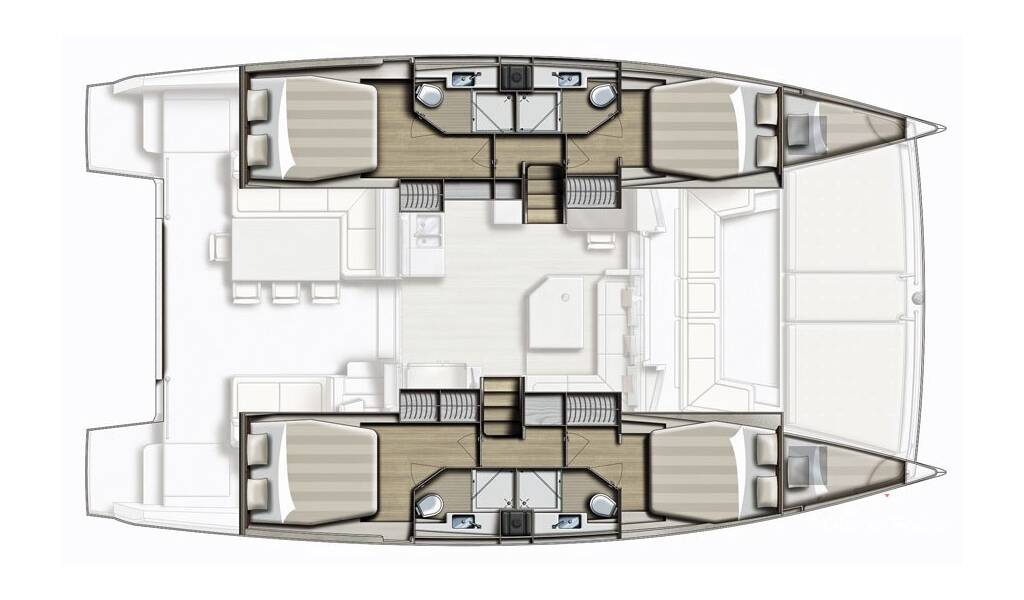 Catamaran Bali 4.5 Albert, built in 2020 is anchored in the Palma de Mallorca, Pantalan del Mediterraneo, Balearic Islands, Spain. It has 4 + 1 cabins, can accommodate 8 + 2 + 2 people and has 4 toilets. Bed linen and kitchen equipment are included in the price.
