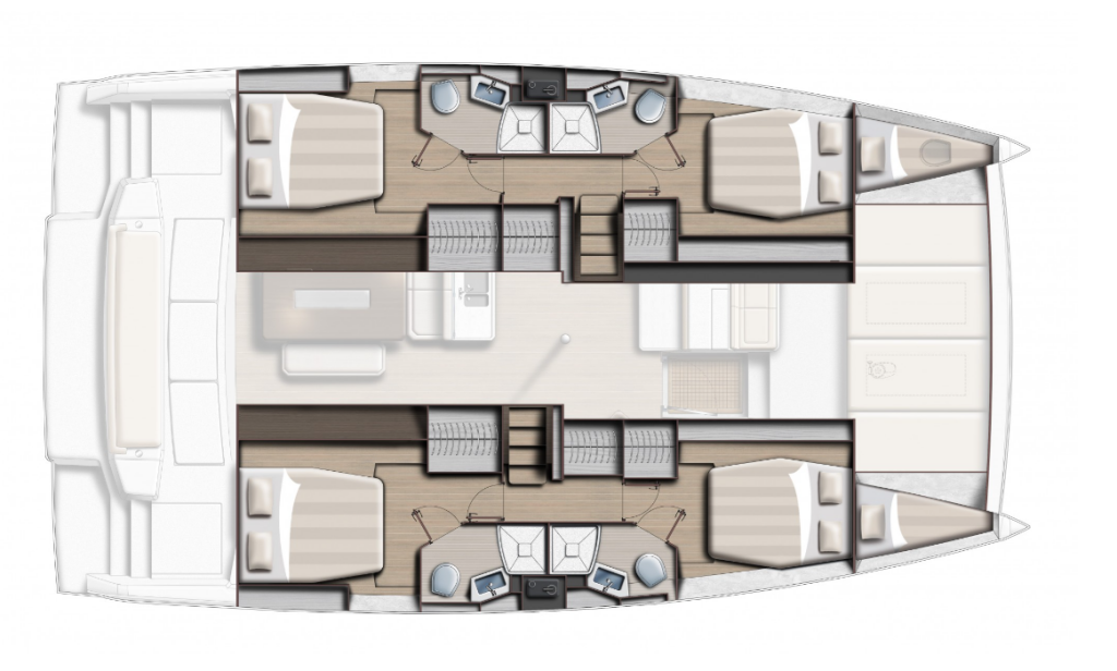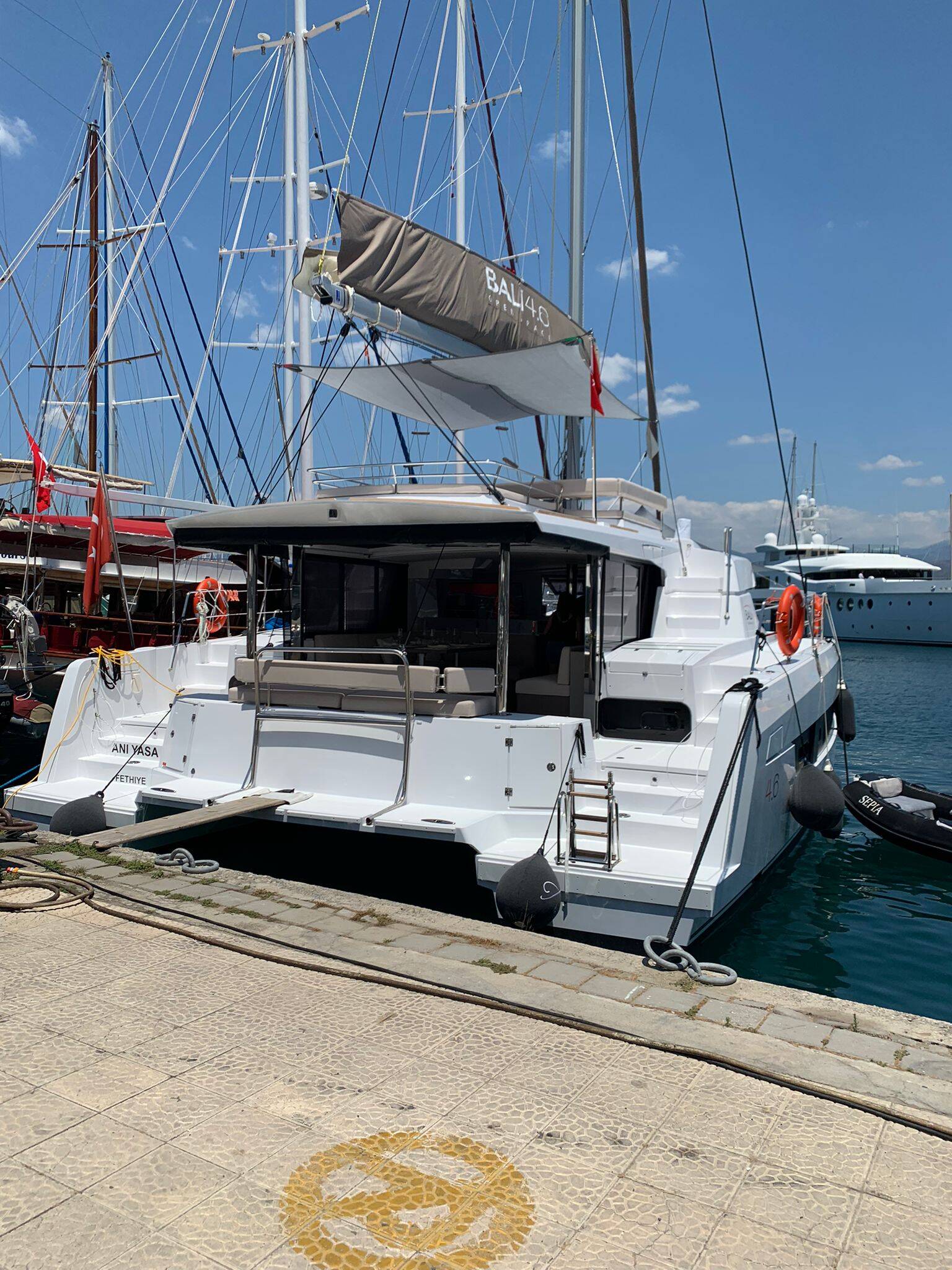 Catamaran Bali 4.6 Ani Yasa, built in 2021 is anchored in the Fethiye, Buba Marina, Aegean, Turkey. It has 4 + 2 cabins, can accommodate 8 + 2 people and has 4 + 1 toilets. Bed linen and kitchen equipment are included in the price.