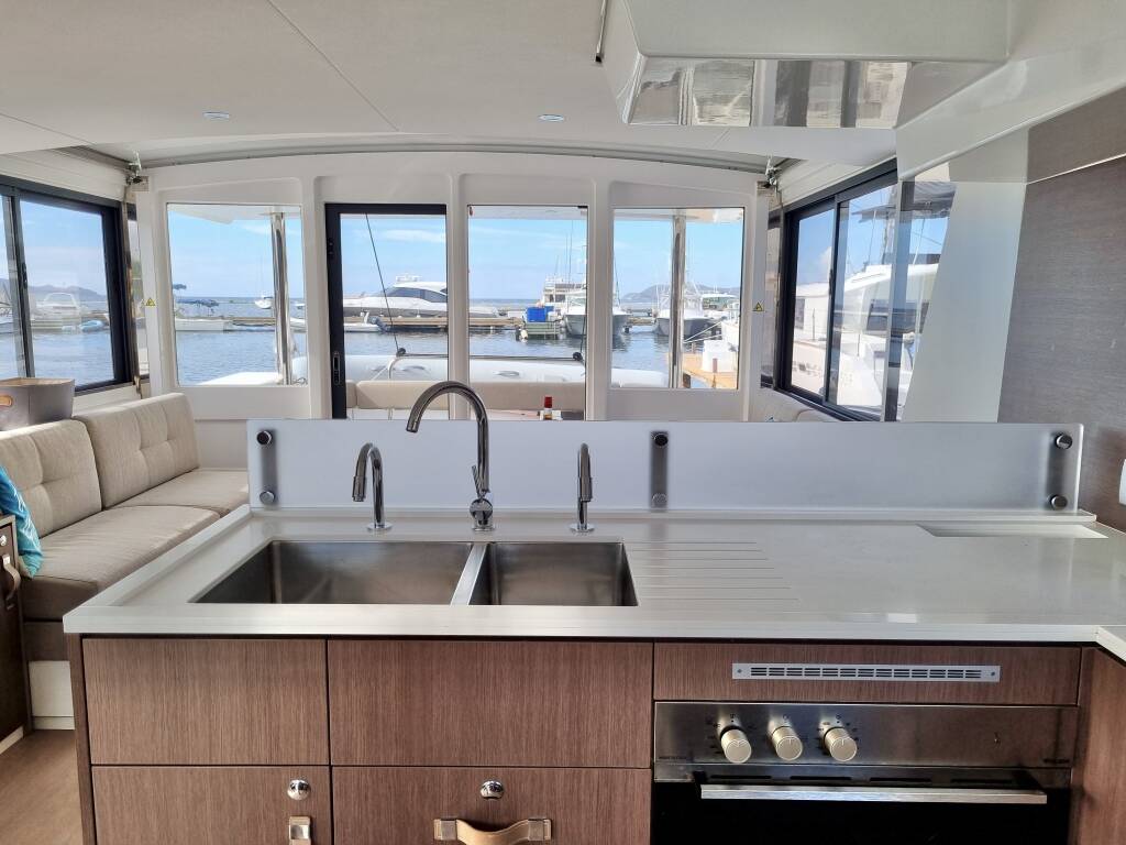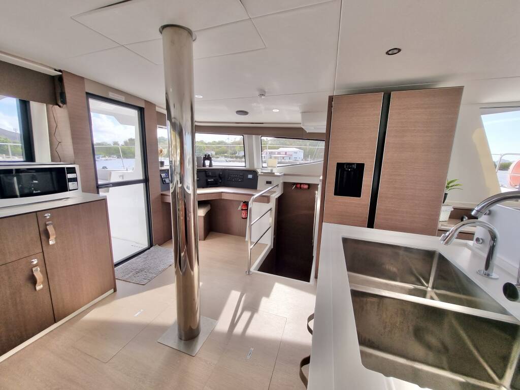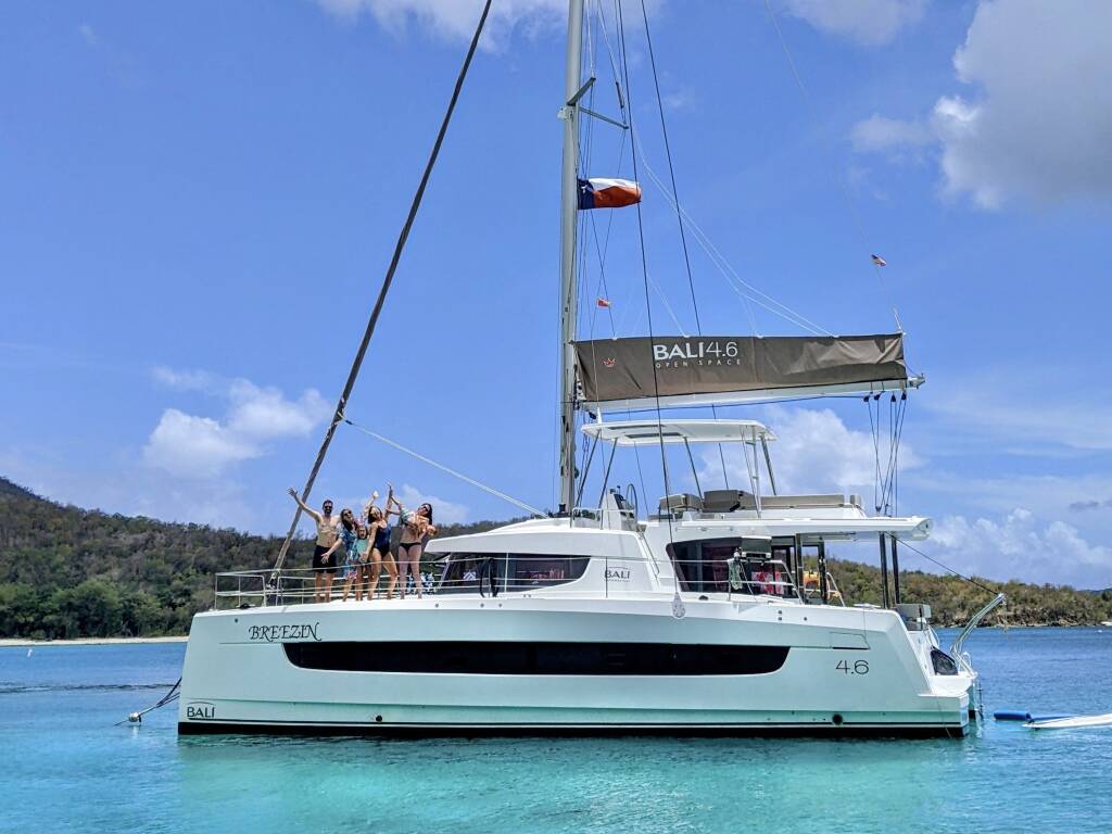 Catamaran Bali 4.6 Breezin, built in 2022 is anchored in the BVI, Hodge's Creek Marina, British Virgin Islands, British Virgin Islands. It has 5 + 1 cabins, can accommodate 10 + 1 people and has 4 + 1 toilets. Bed linen and kitchen equipment are included in the price.