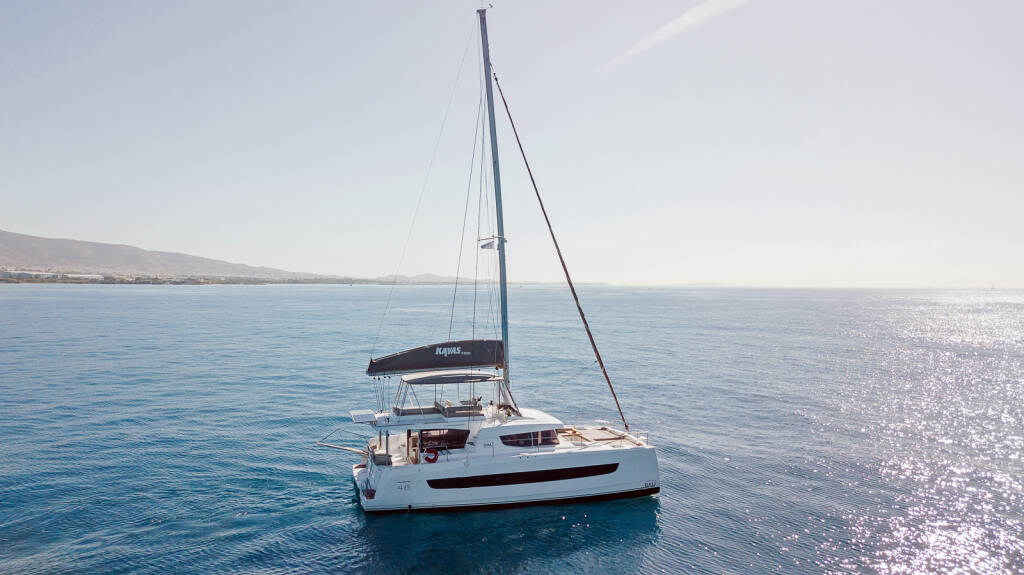 Catamaran Bali 4.6 Kos 46.Cat7, built in 2024 is anchored in the Kos, Kos Marina, Dodecanese, Greece. It has 5 + 1 cabins, can accommodate 10 + 1 people and has 4 + 1 toilets. Bed linen and kitchen equipment are included in the price.