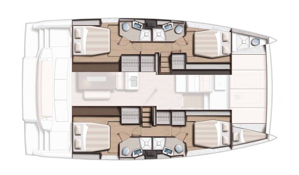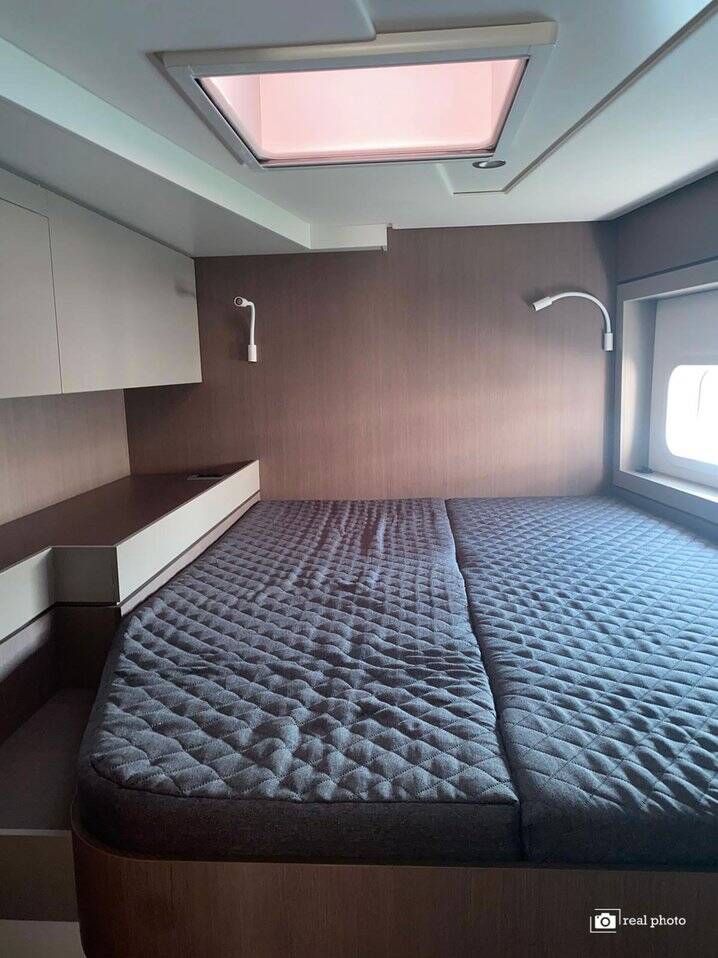 Catamaran Bali 4.6 Moderna, built in 2021 is anchored in the Sardinia, Cannigione, Sardinia, Italy. It has 4 + 1 cabins, can accommodate 8 + 1 + 1 people and has 4 + 1 toilets. Bed linen and kitchen equipment are included in the price.