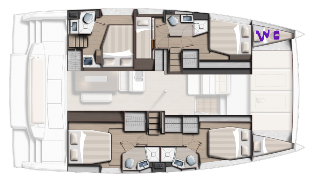 Catamaran Bali 4.6 Olivier, built in 2025 is anchored in the Hyeres Port Saint Pierre, Provence-Alpes-Côte d'Azur, France. It has 5 cabins, can accommodate 10 people and has 5 toilets. Bed linen and kitchen equipment are included in the price.
