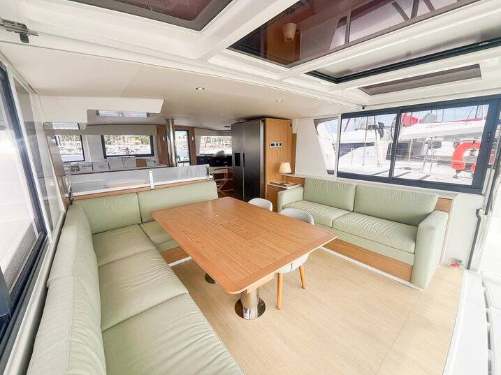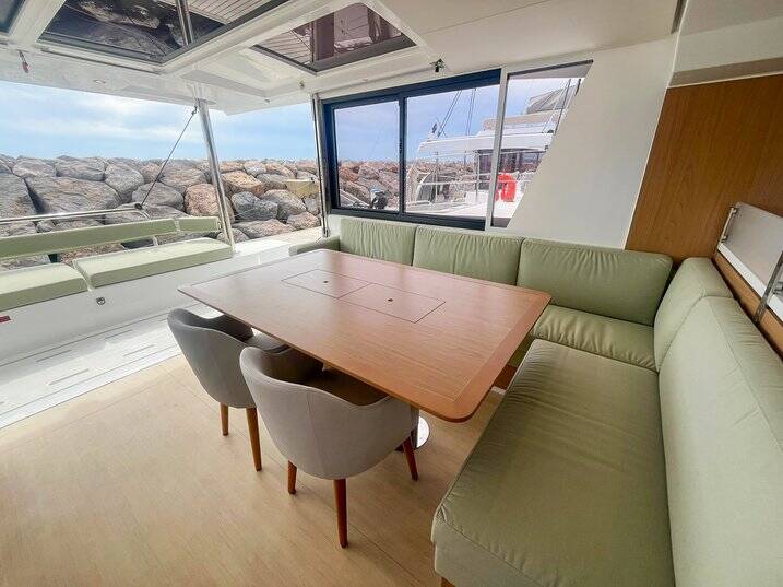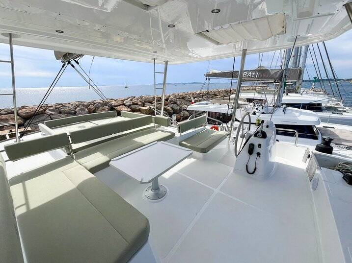 Catamaran Bali 4.6 Queen Mary, built in 2025 is anchored in the Marines de Cogolin, Provence-Alpes-Côte d'Azur, France. It has 4 cabins, can accommodate 8 people and has 4 toilets. Bed linen and kitchen equipment are included in the price.