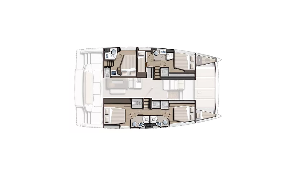 Catamaran Bali 4.6 Sirène, built in 2026 is anchored in the Marina Kastela, Split region, Croatia. It has 5 + 2 cabins, can accommodate 10 + 2 people and has 4 + 1 toilets. Bed linen and kitchen equipment are included in the price.
