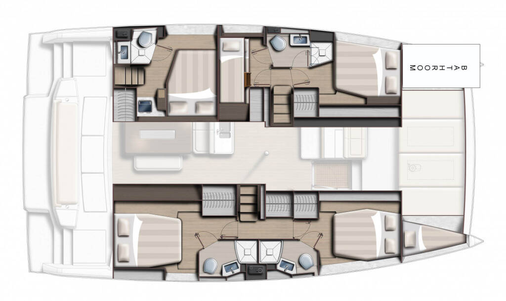 +provisioning ; Crew on board must have their own toilets/ showers. If either a skipper or a hostess/cook is on board, 1 double cabin will be required for him/her. If both a skipper and a hostess/cook are on board, 1 double cabin and 1 forepeak cabin will be required for them. Exceptions exists for specific layouts, Sales Agents will provide more details about the different boat models.