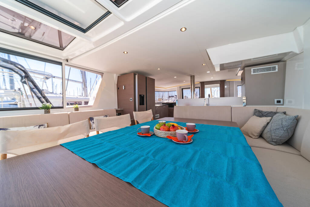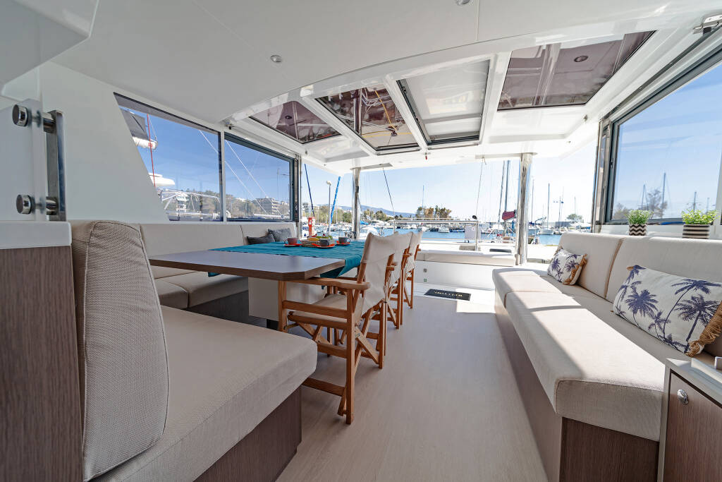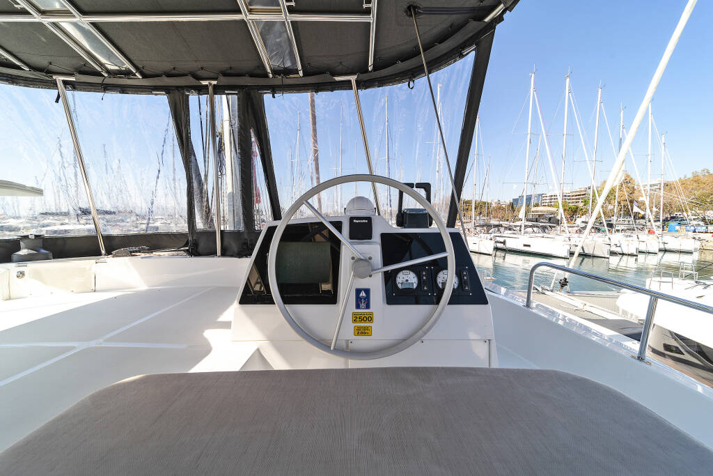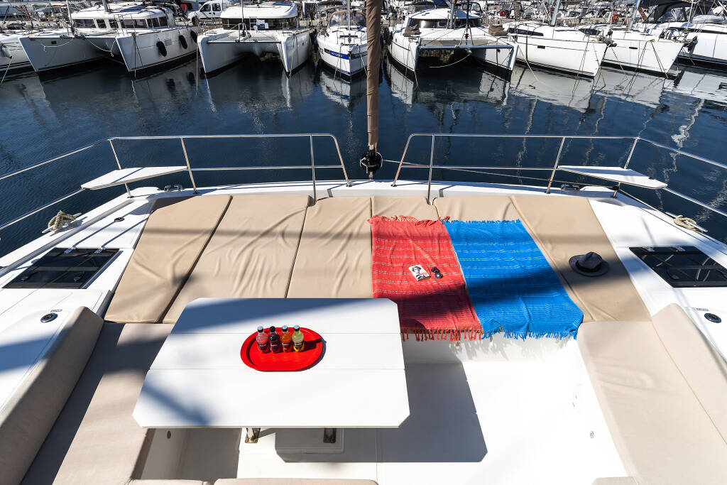 Catamaran Bali 4.8 About Time, built in 2021 is anchored in the Athens, Alimos marina, Athens area/Saronic/Peloponese, Greece. It has 6 + 1 cabins, can accommodate 12 people and has 6 + 1 toilets. Bed linen and kitchen equipment are included in the price.