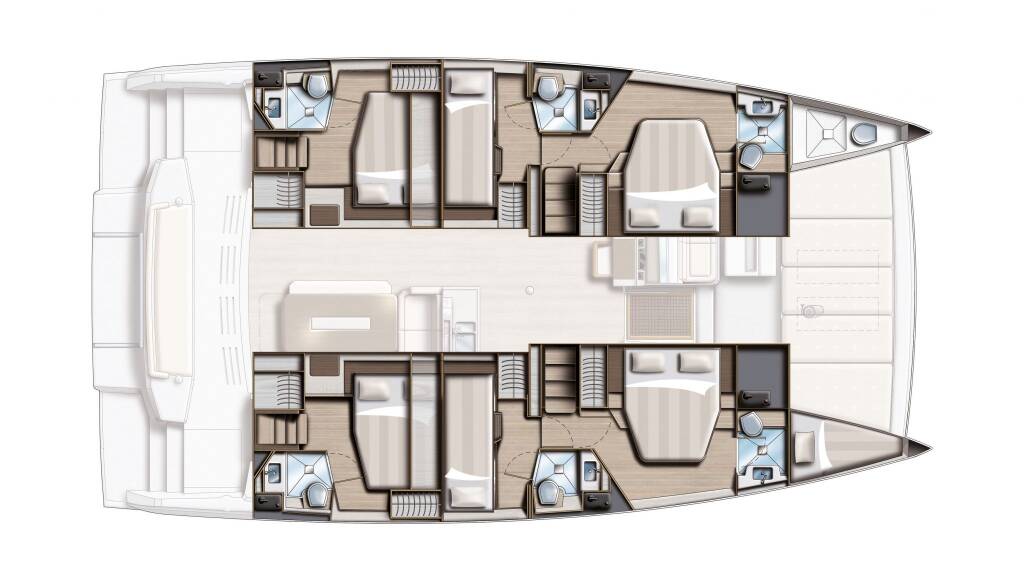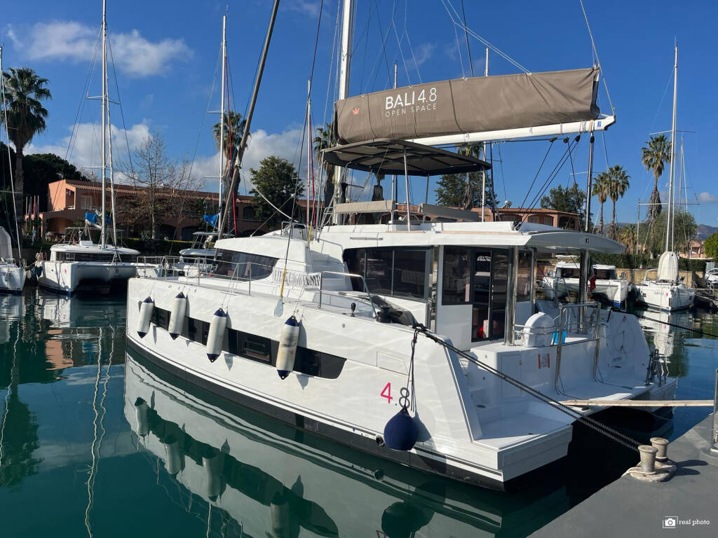 Catamaran Bali 4.8 Antigone, built in 2024 is anchored in the Sicily, Portorosa, Sicily, Italy. It has 6 + 1 cabins, can accommodate 12 + 1 people and has 6 + 1 toilets. Bed linen and kitchen equipment are included in the price.